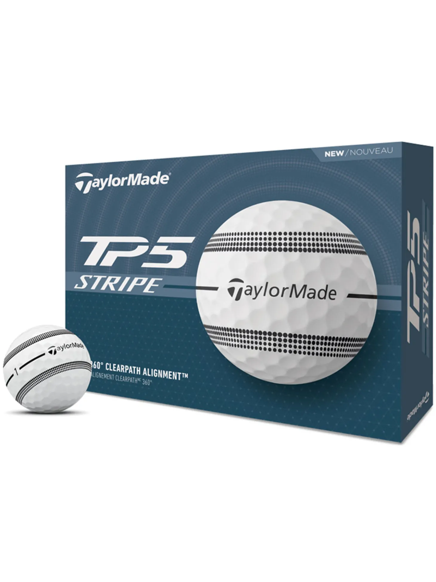 The TaylorMade TP5 Stripe Golf Balls feature a Speed Wrapped Core and five layers of Progressive Speed Construction. The soft urethane cover delivers exceptional greenside spin and responsive feel while minimising driver spin. Now with 360° ClearPath Alignment, lining up at the target on the green and off the tee has never been easier.