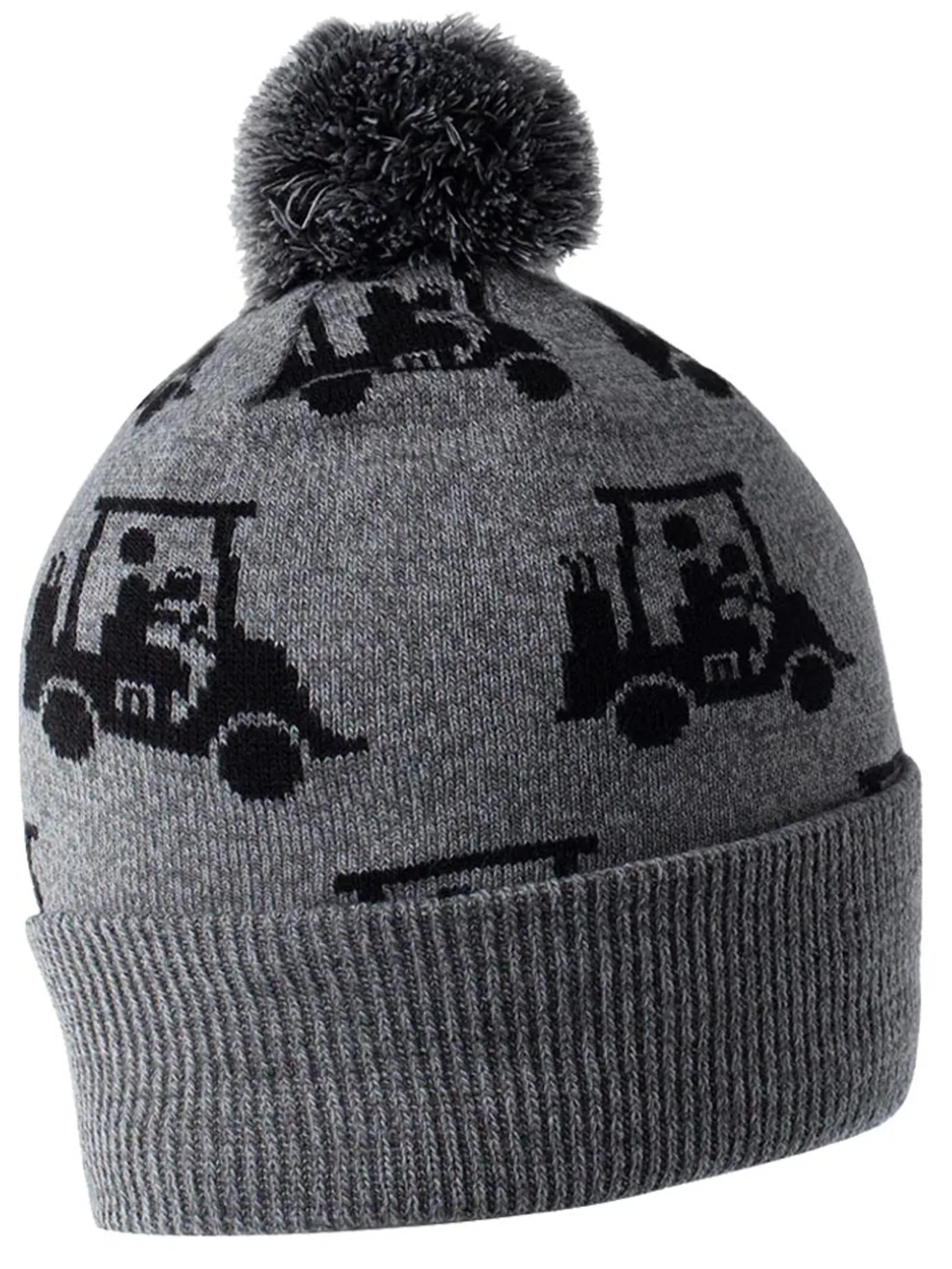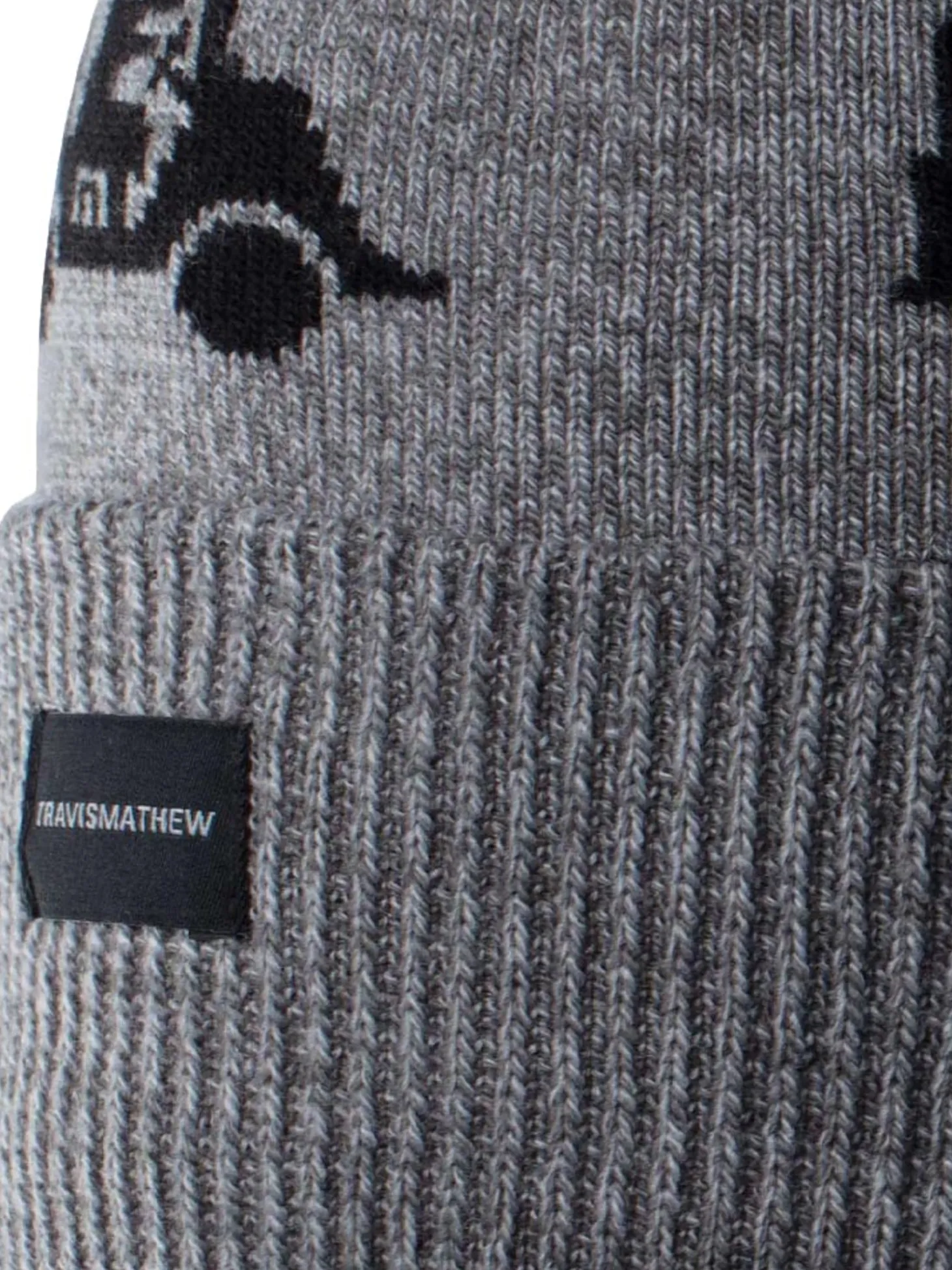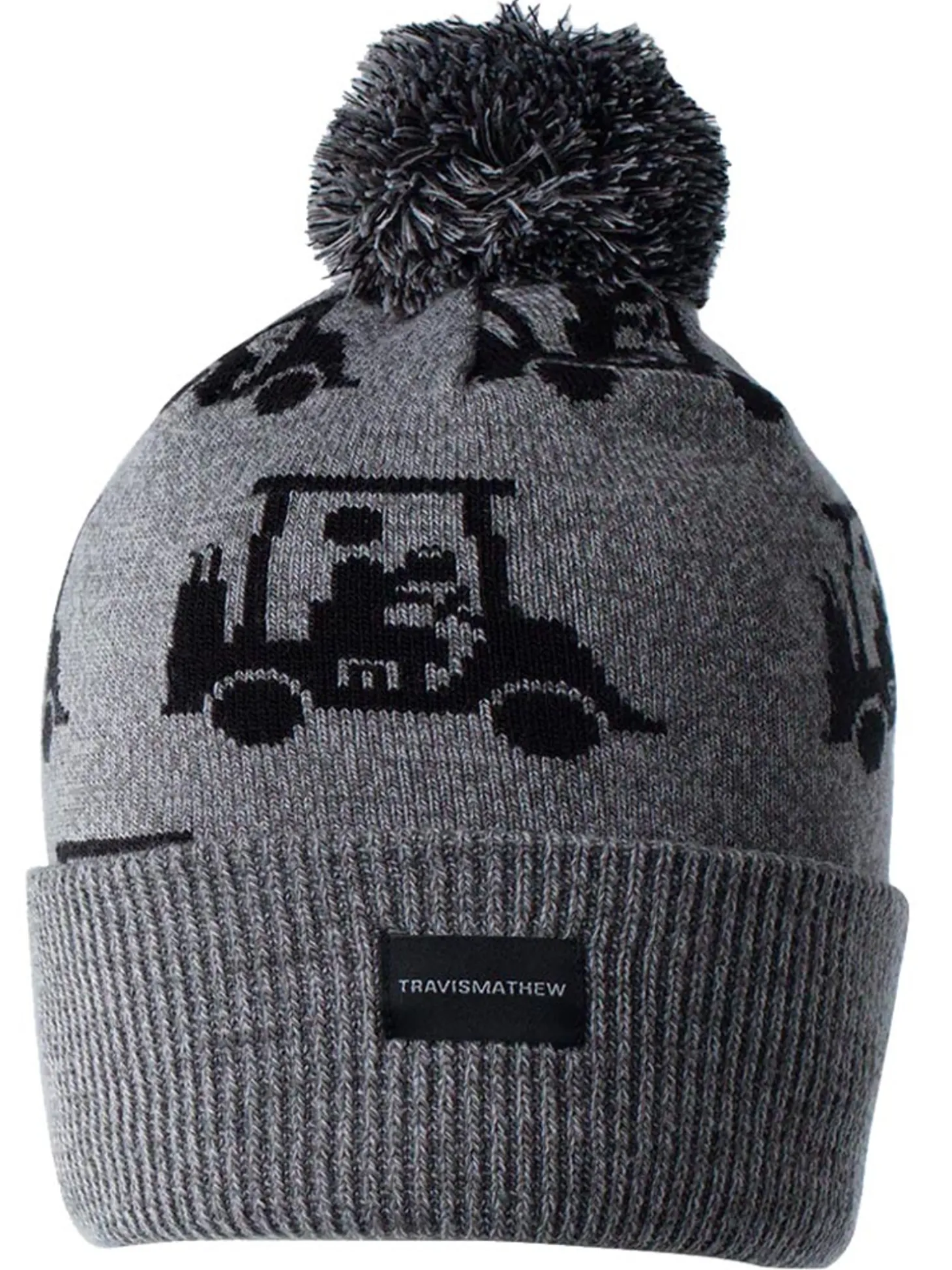 The TravisMathew Swingles Beanie (Grey) can channel the power of the pom with the brand’s iconic golf cart print.