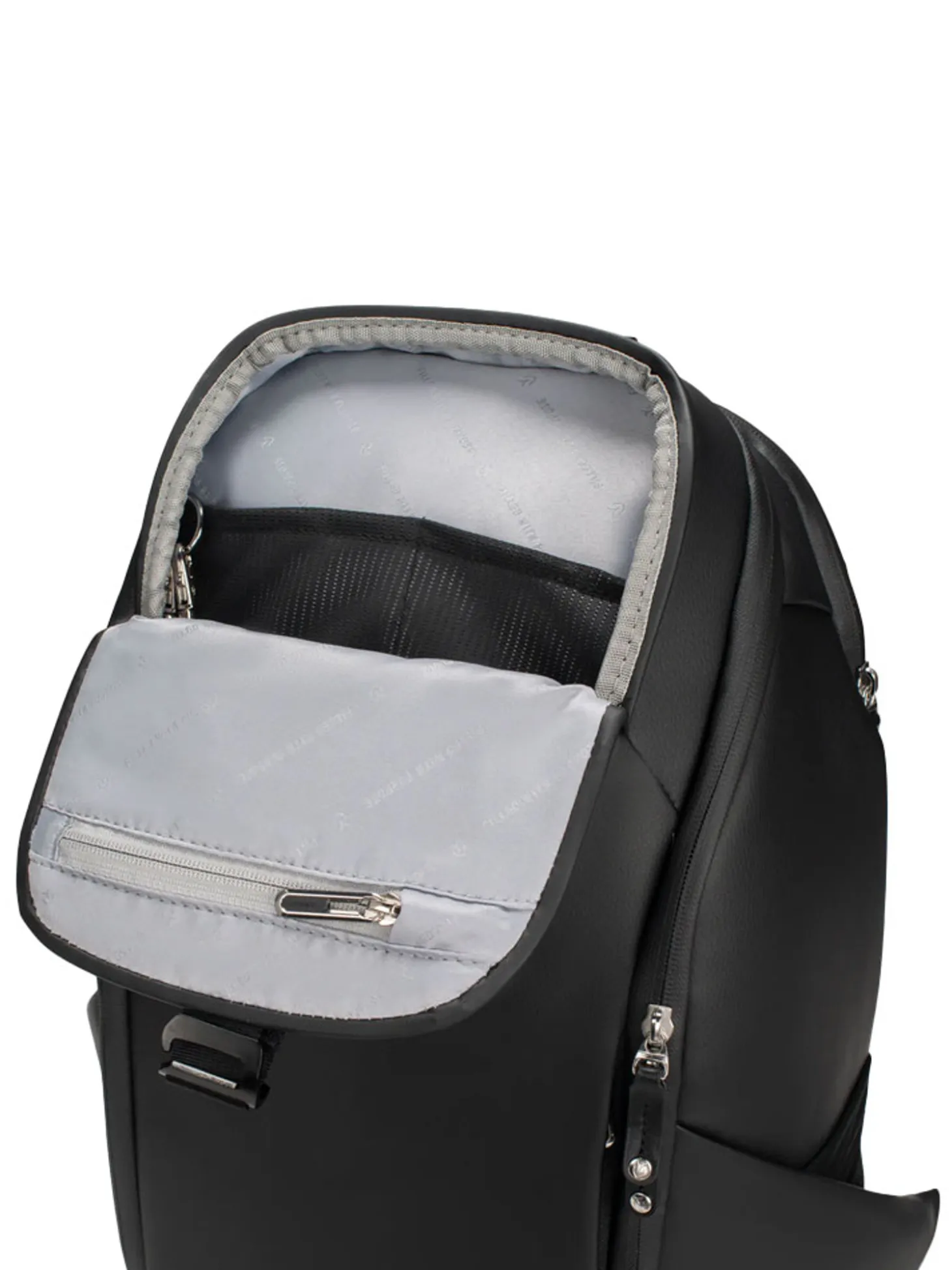 - Dedicated tech compartment with 2 velour-lined padded sleeves (fits up to a 15” Macbook Pro)