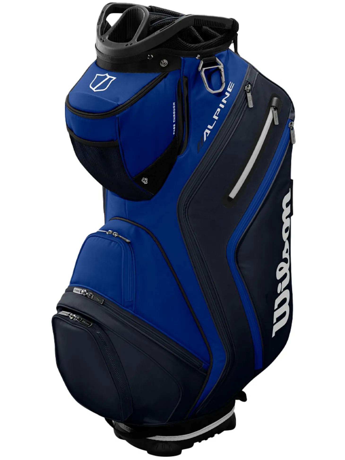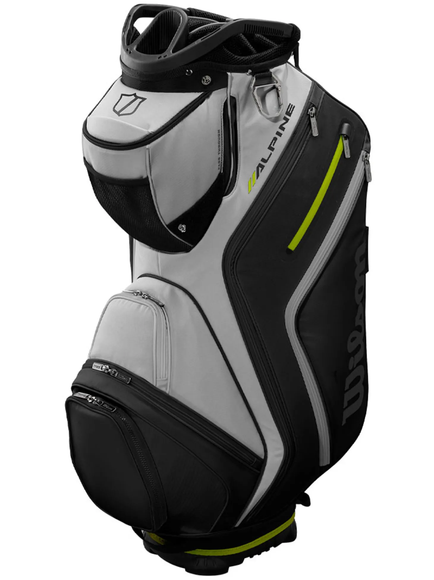 The Wilson Staff Alpine Cart Bage reaches the summit in terms of cart bag features; 14-way full length dividers and a massive ice pocket take the riding golf experience to new heights.