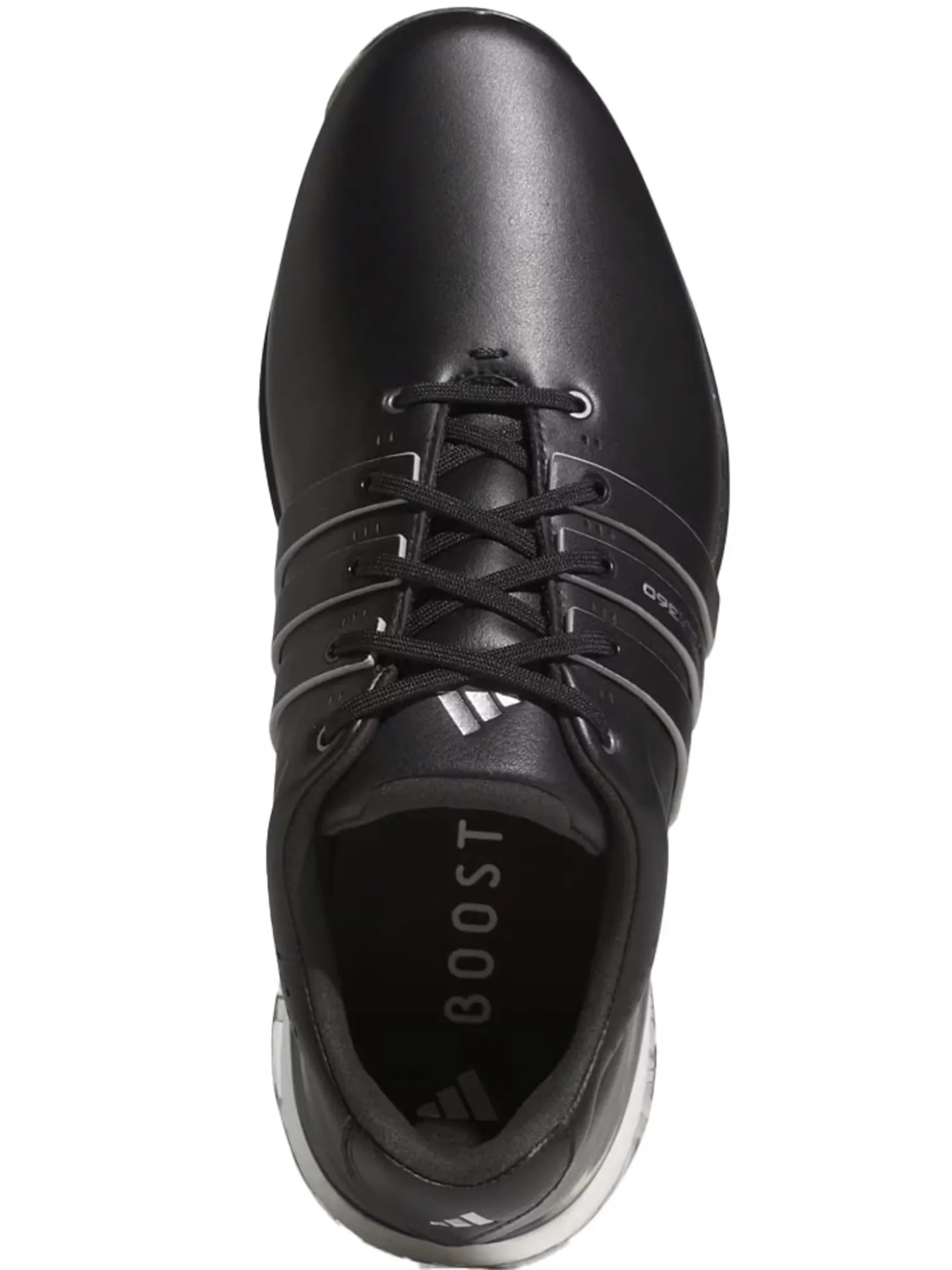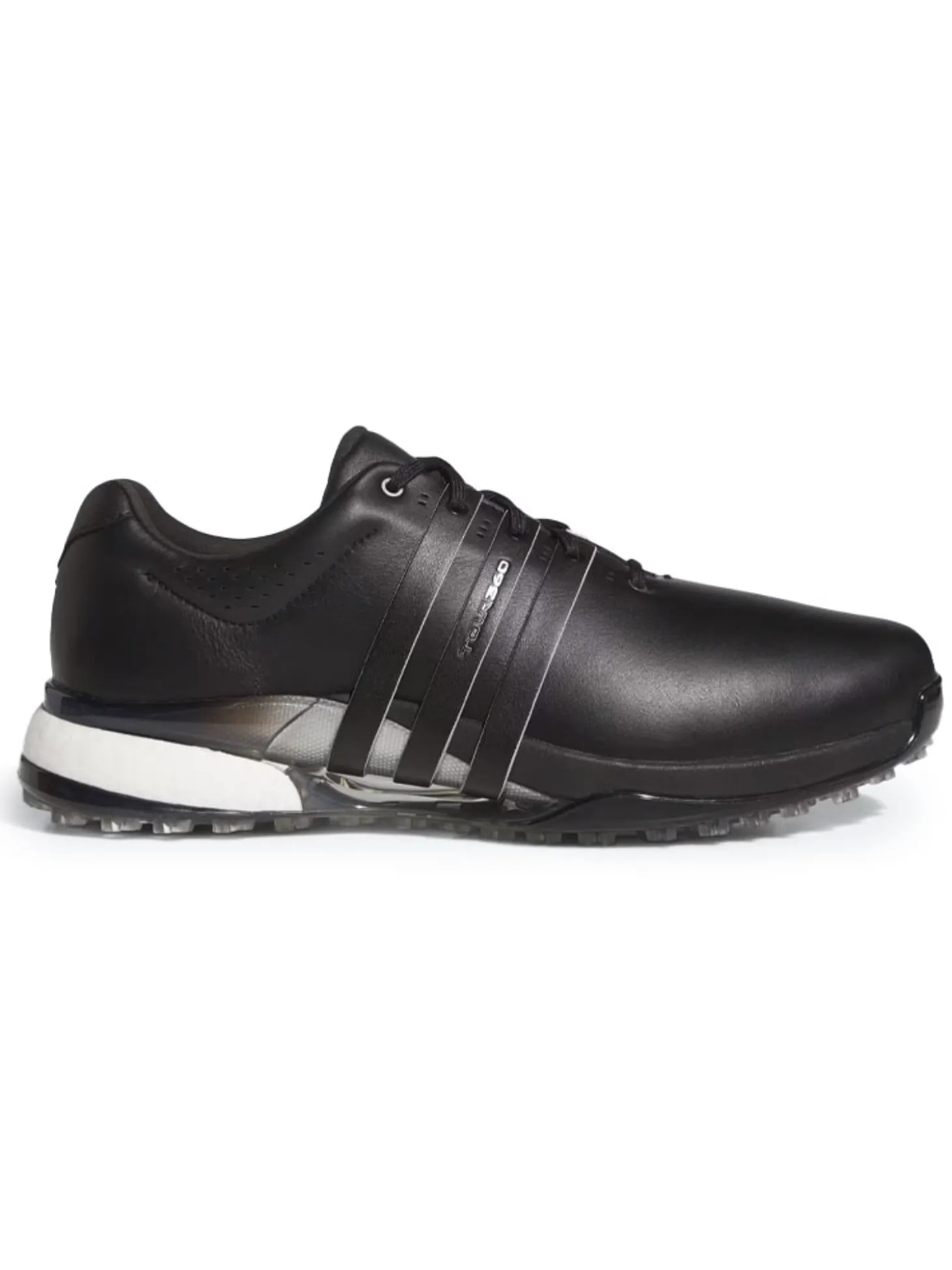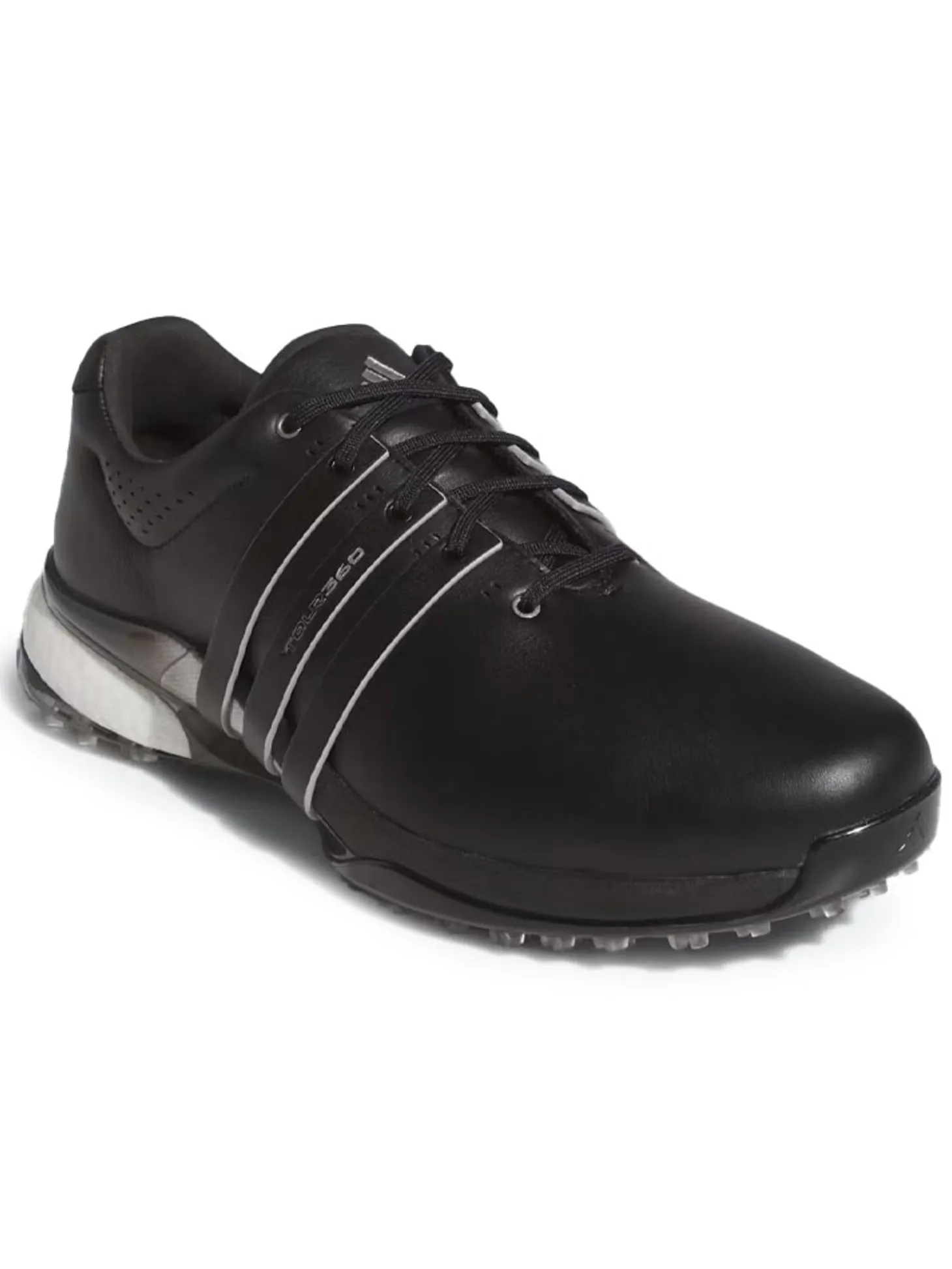 The adidas Tour360 25 Wide Spikeless Golf Shoes (Black) will let you experience enhanced stability courtesy of the signature wrap-around design, along with the energy return of adidas BOOST. The spikeless outsole offers confident grip on the course with the comfort and versatility for all-day wear.