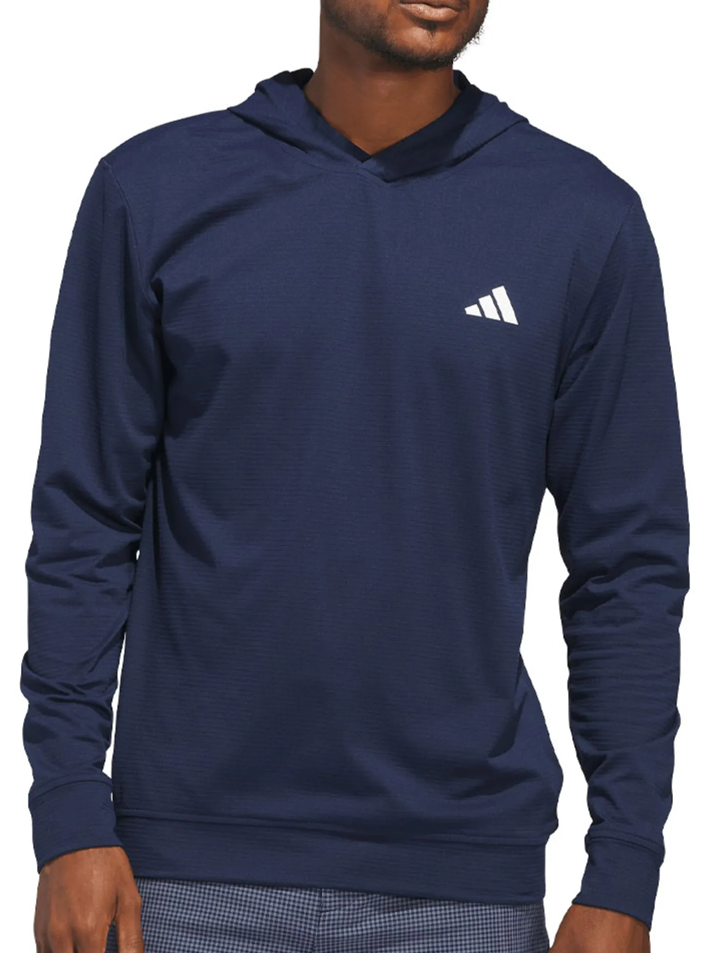 The adidas Ultimate365 Elevated Pullover Hoodie (Navy) will help elevate your play during cool rounds. A soft feel and plenty of stretch make this your go-to pullover in transitional weather. A fitted hood adds extra coverage when you need it.