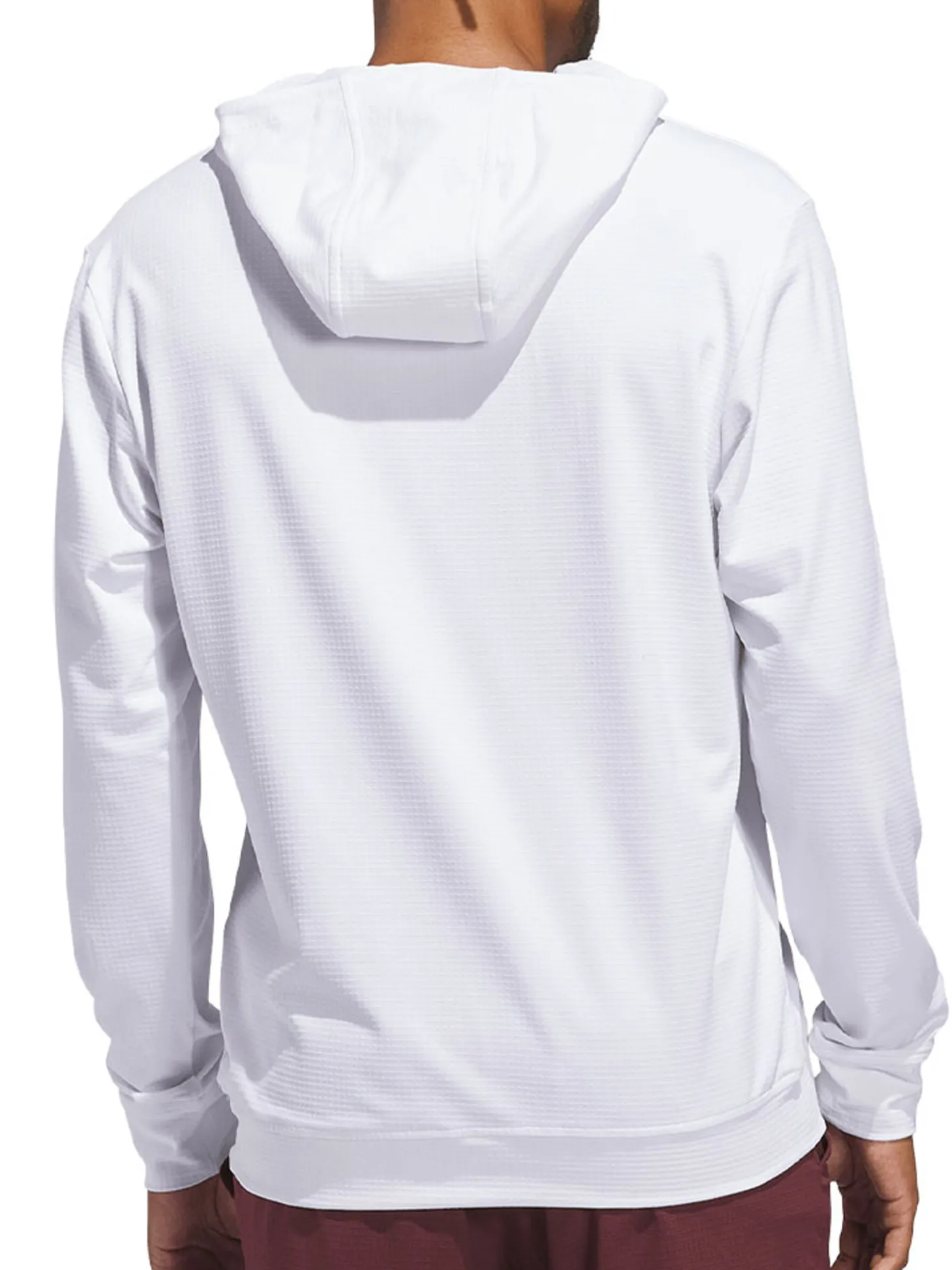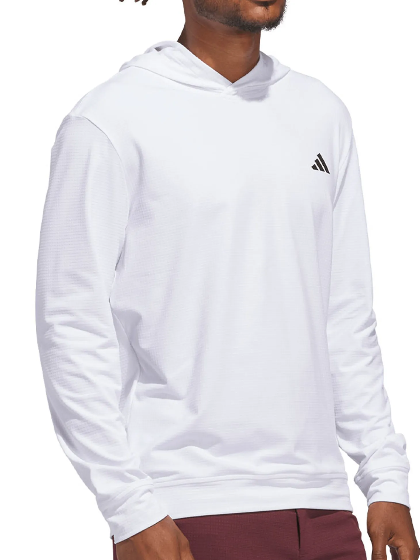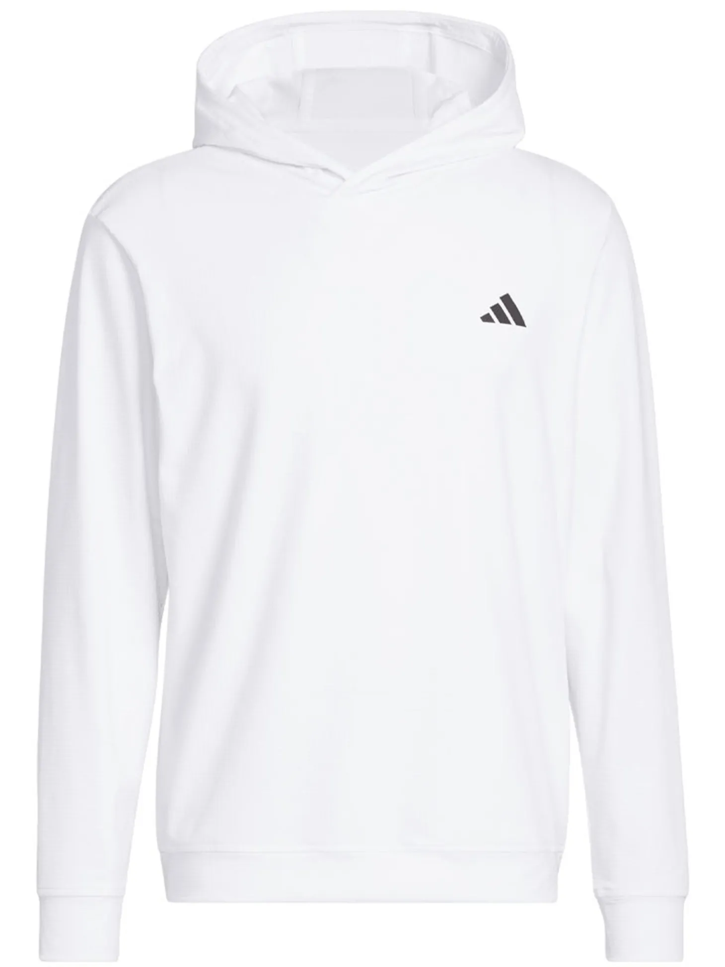 The adidas Ultimate365 Elevated Pullover Hoodie (White) will help elevate your play during cool rounds. A soft feel and plenty of stretch make this your go-to pullover in transitional weather. A fitted hood adds extra coverage when you need it.