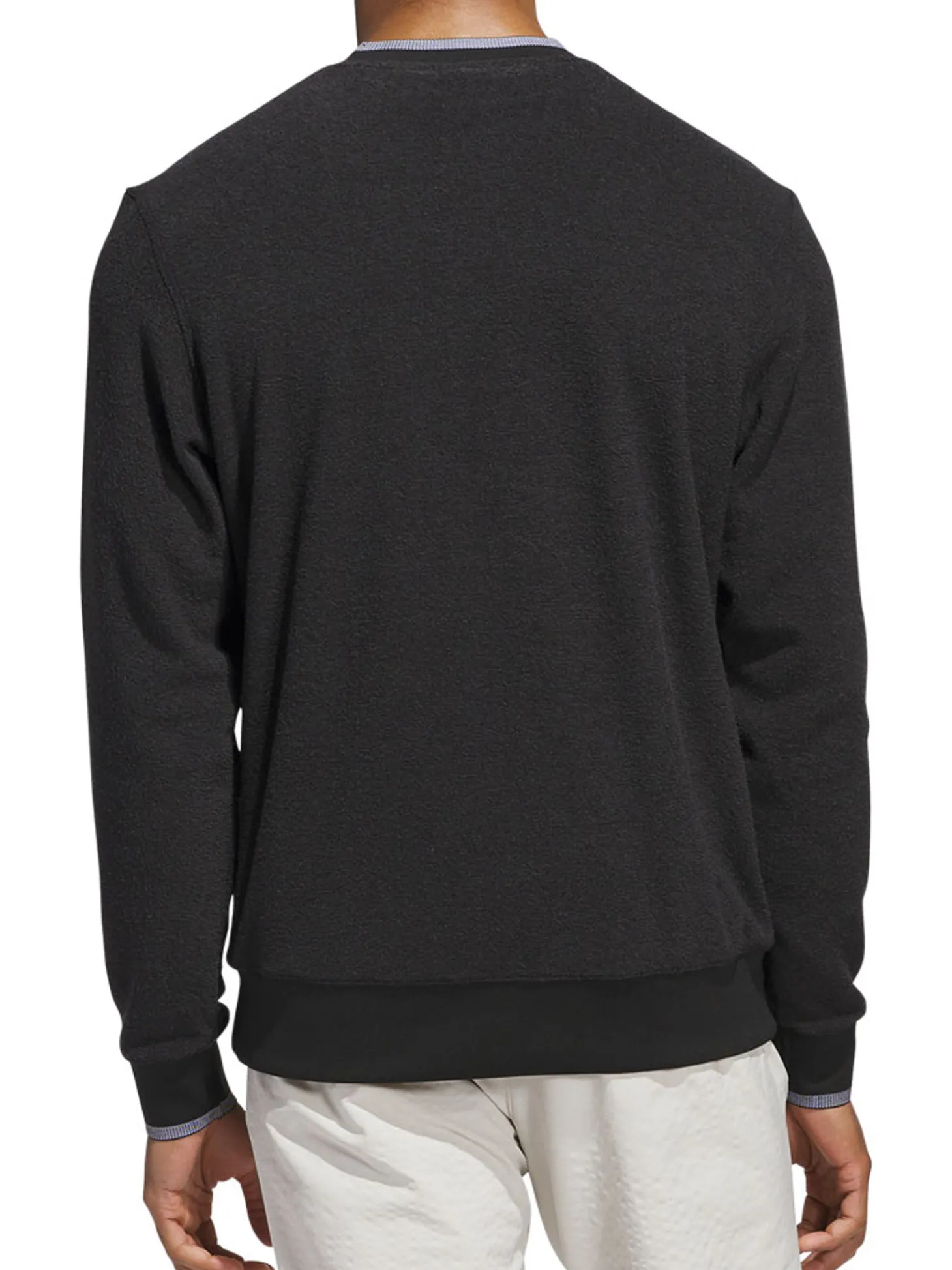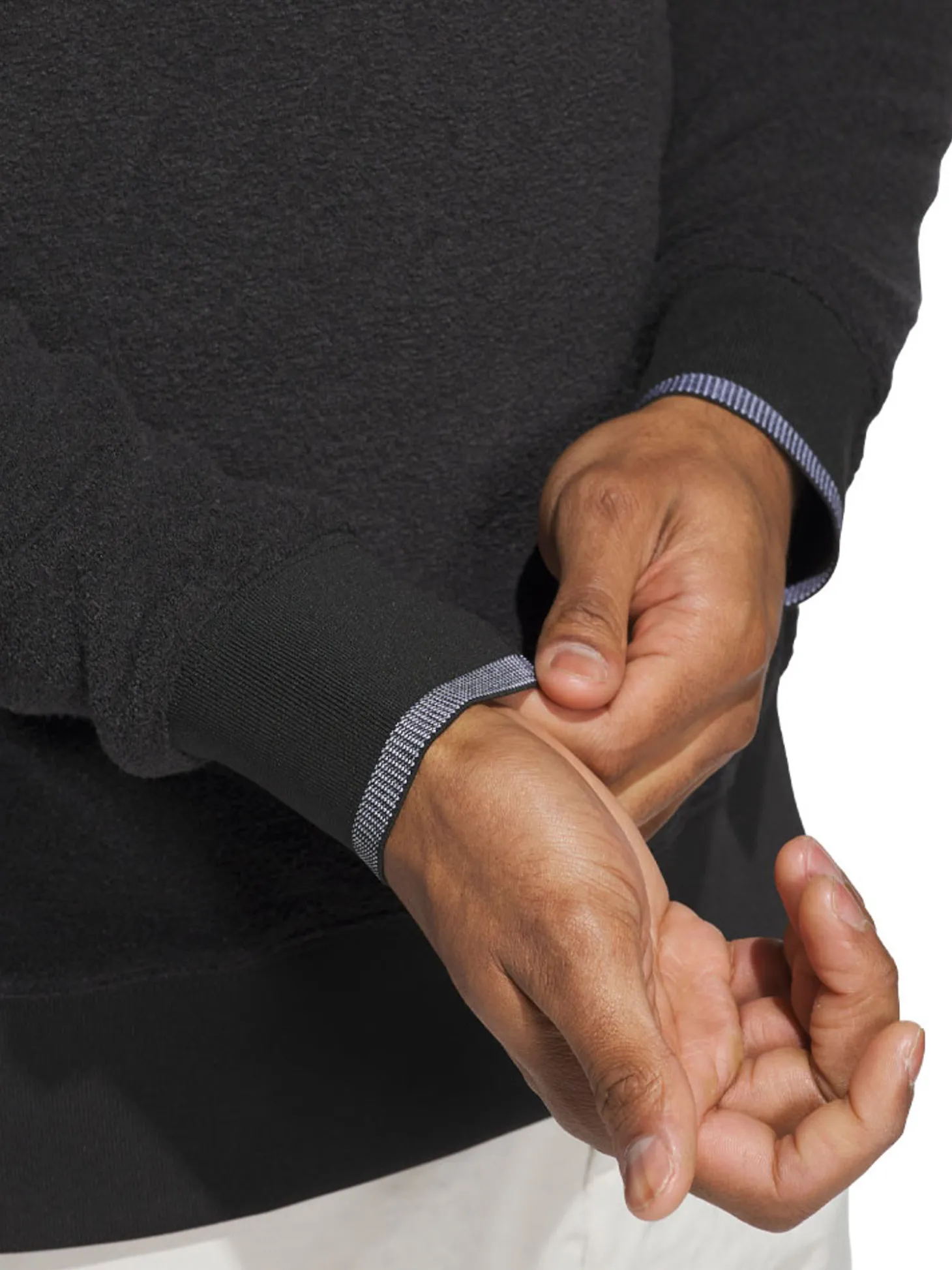 The adidas Ultimate365 Tour Crewneck Sweatshirt (Black) adds warmth during cool weather with its brushed fleece fabric. Subtle texture adds the finishing touch for a look that plays well on any course.