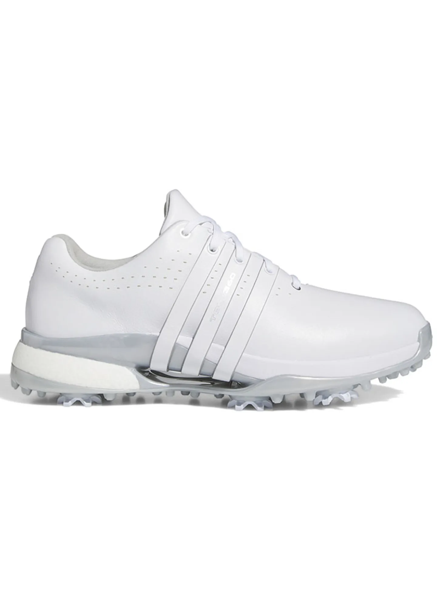 The adidas Tour360 24 BOOST Golf Shoes (White) are made for dedicated golfers looking for golf shoes that inspire confidence and style. They wrap your feet in premium materials and feature leading-edge footwear technology for elite-level performance. Elevate your game with golf shoes that let you look and feel your best.