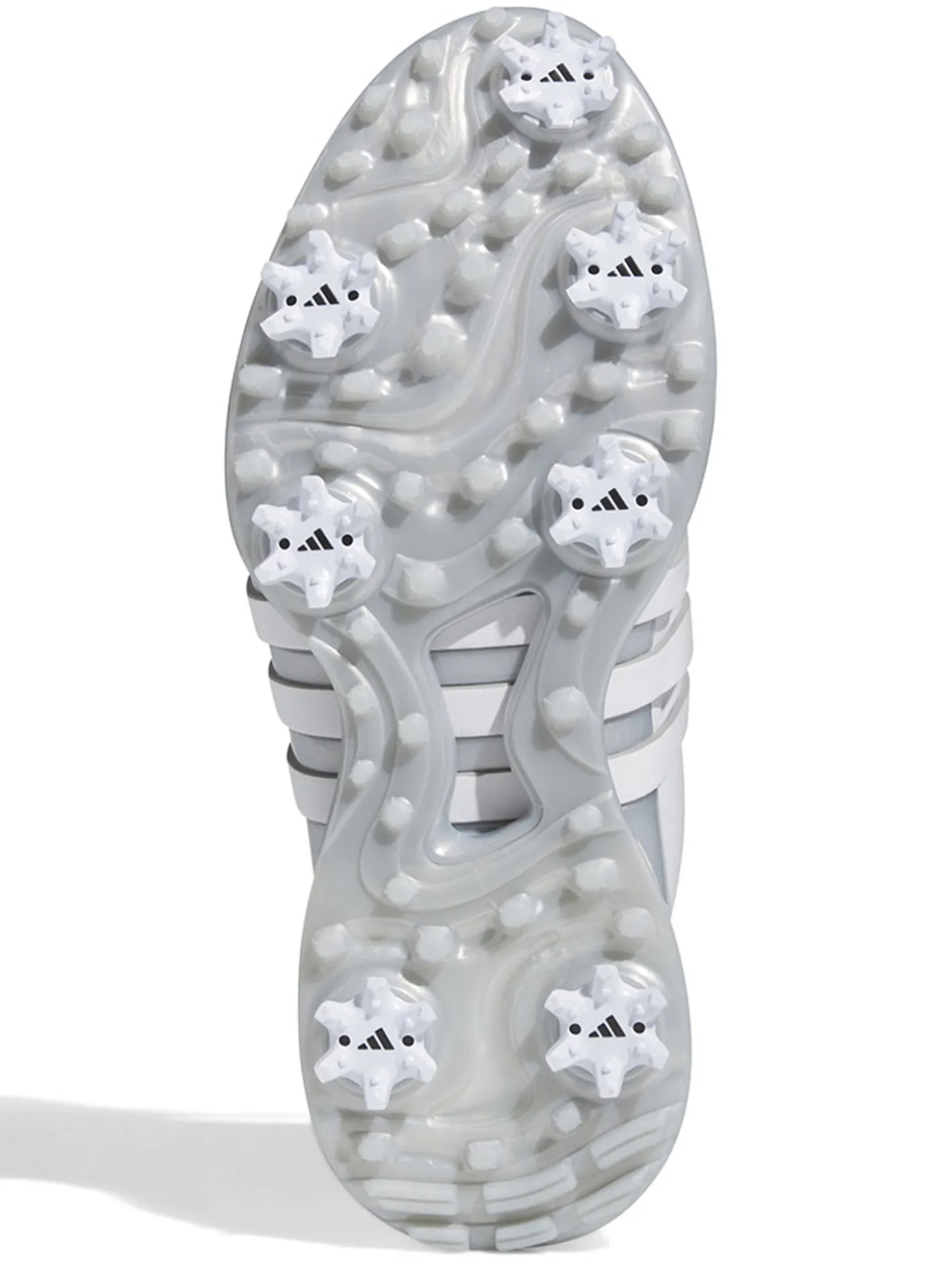 Designed for optimal traction, the TPU outsole features replaceable spikes where golfers need them most. adidas also included flex grooves in the secondary traction, finished with high gloss to help reduce clogging in the footwear. adidas also placed a spike closer to the toe with an aim of allowing for better toe-off through the swing and improved power from the ground.