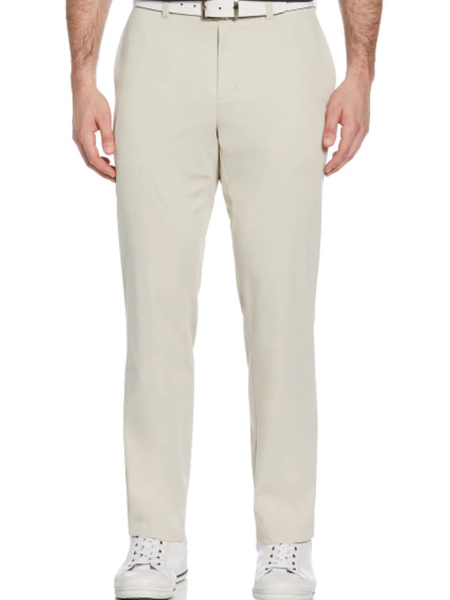 The Ben Hogan Active Waistband Flat Front Golf Pant (Beige) offers added comfort and coverage.