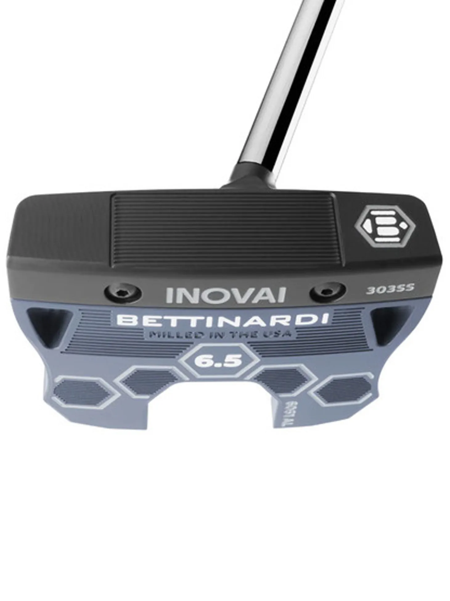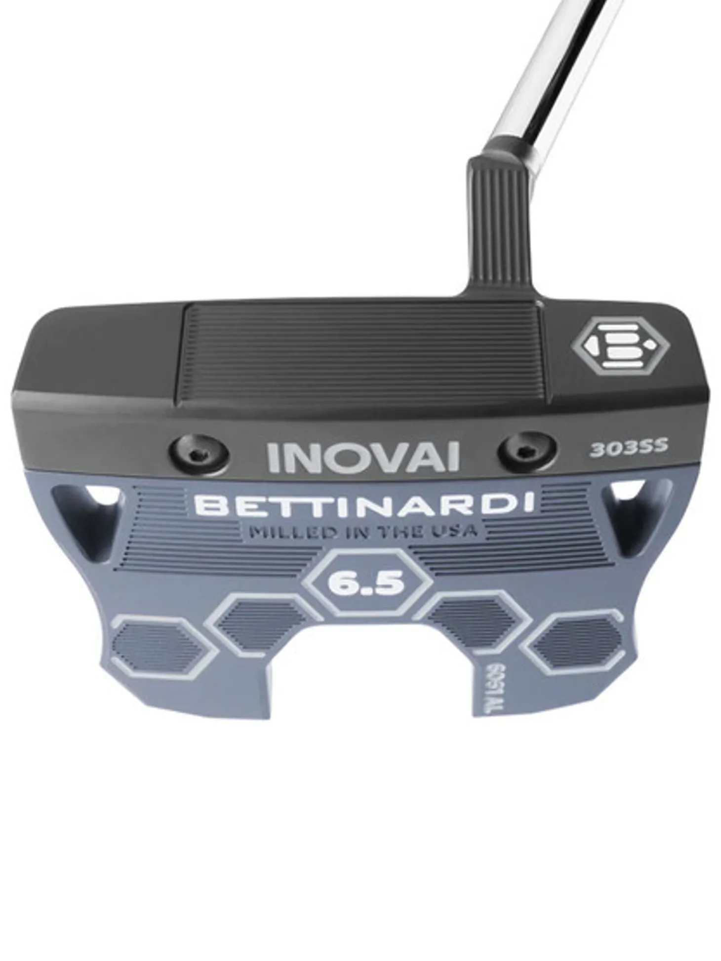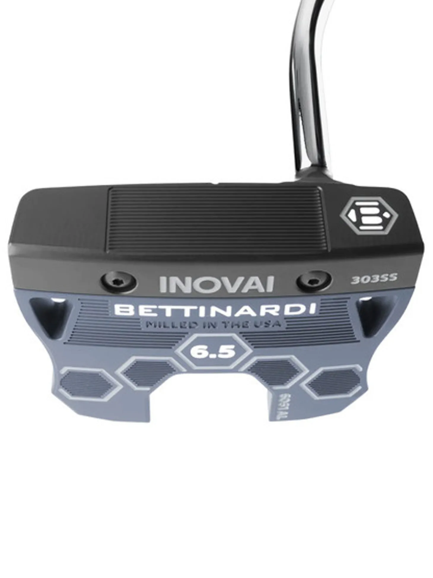 The two-part design of each INOVAI putter consists of a 303 Stainless Steel face piece and a 6061 Military-Grade Aluminium back. This combination of premium metals balances each INOVAI model while the golfer experiences ultimate feel and control. - GLARE-RESISTANT FINISHÂ
