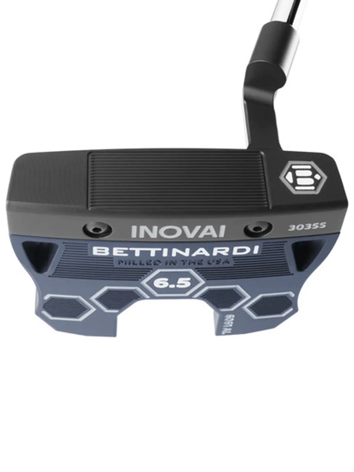 The 2024 Bettinardi Inovai 6.5 putter features a sleeker, more compact design than the previous model, while preserving the immaculate fangs that form its signature hexagonal cutout. The fangs are shaped to optimise the putter’s MOI (Moment of Inertia), with triangular vents that distribute additional weight to the perimeter. The sleek lines of the 6061 Aluminium back piece and triple sightline offer perfect visual cues for simple setup and effortless alignment. The 303 Stainless Steel front piece features our Roll Control face milling, our proprietary groove design which offers a soft feel and is designed to get the ball into a true roll faster.