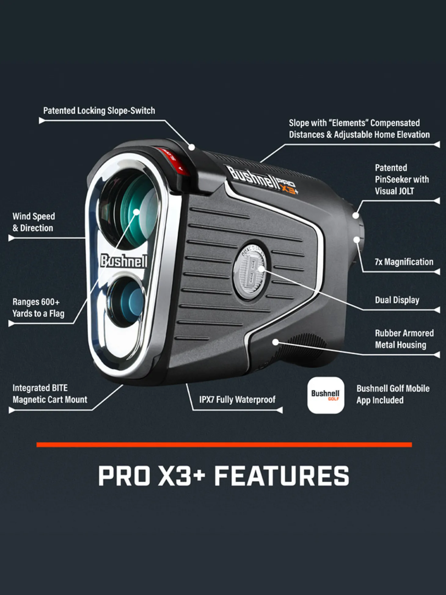 The NEW 2024 Bushnell Pro X3+ Rangefinder features next level performance with wind. Pro X3+ is the most powerful and precise laser rangefinder to date – packing all of the market-leading innovations you have come to expect from Bushnell.