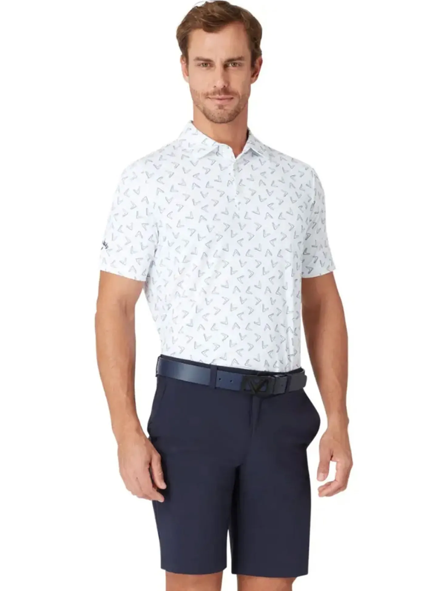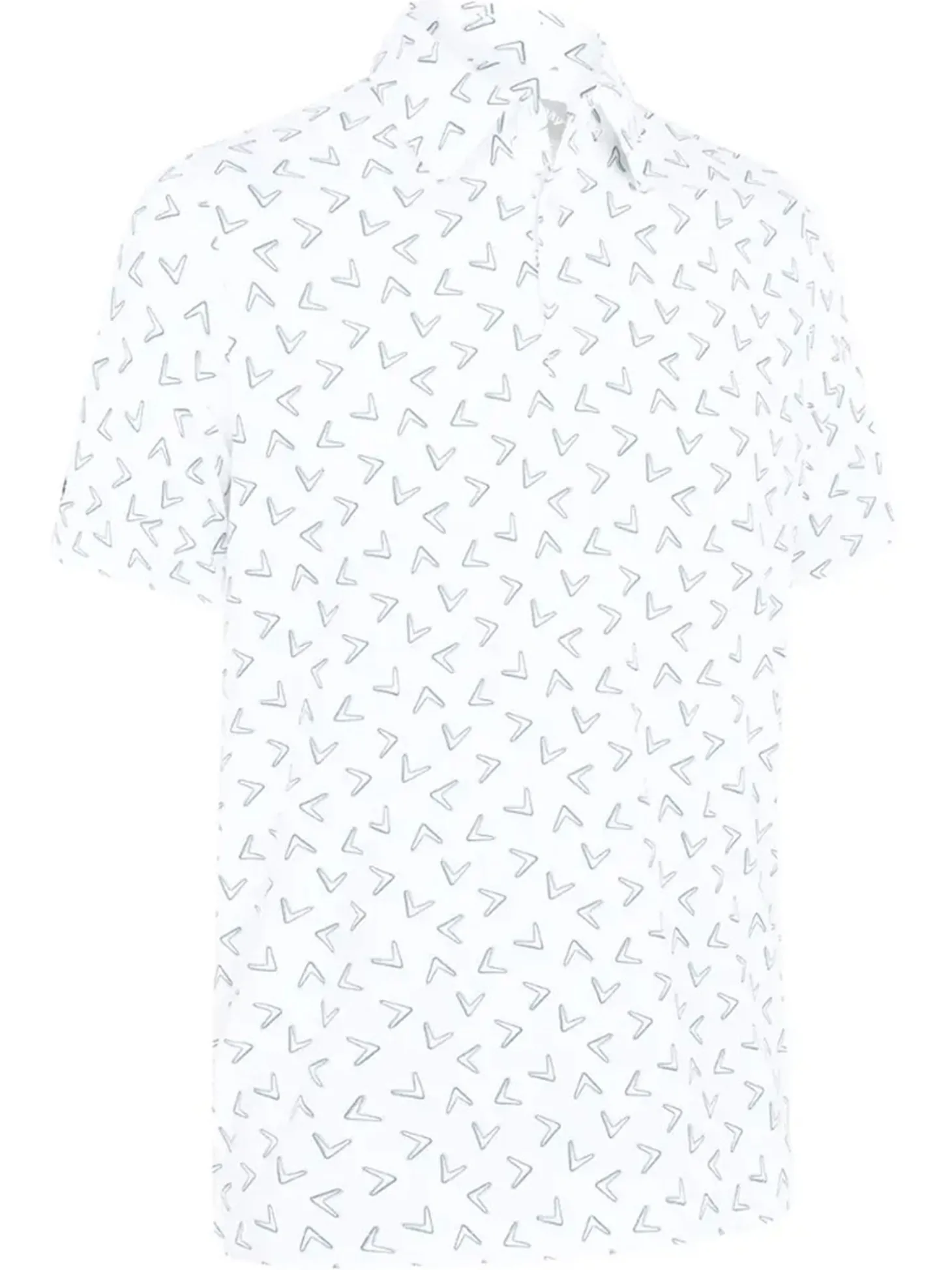 The Callaway All Over Large Chev Print Polo (White) offers unrestricted movement, so you can stay focused on your performance. The lightweight, moisture-wicking fabric helps you feel cool and comfortable through every round while the chevron print adds stylish flair.