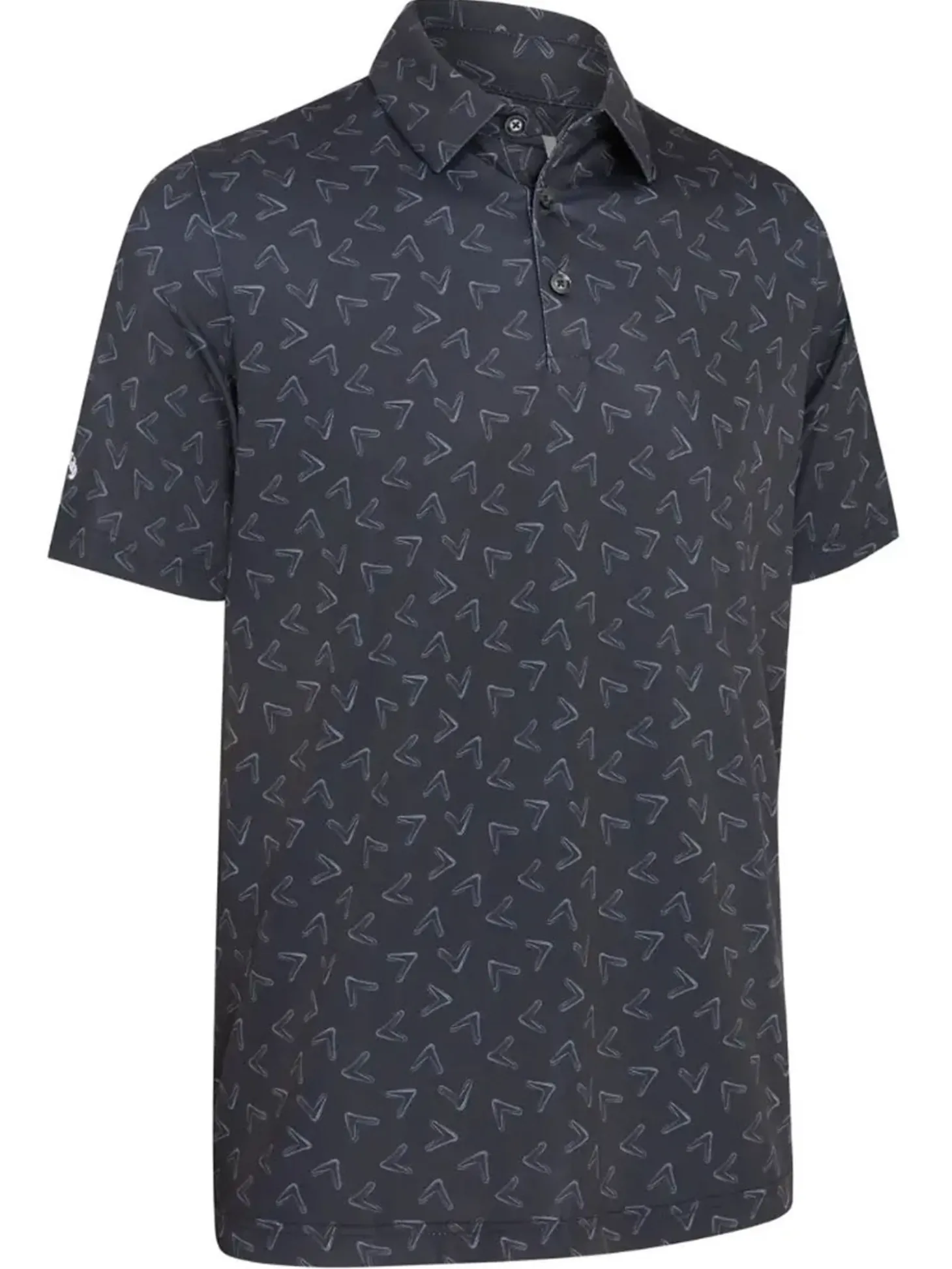 The Callaway All Over Large Chev Print Polo (Caviar) offers unrestricted movement, so you can stay focused on your performance. The lightweight, moisture-wicking fabric helps you feel cool and comfortable through every round while the chevron print adds stylish flair.