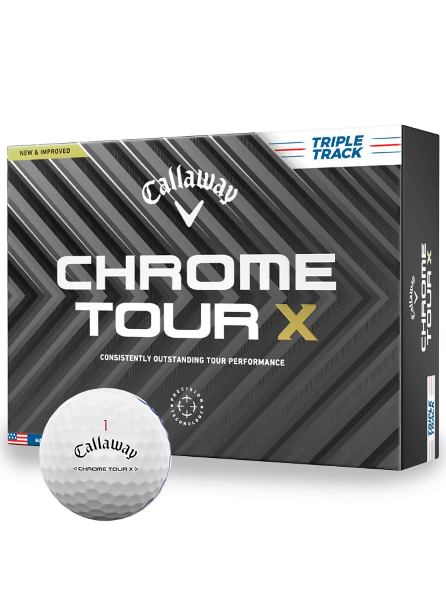 The NEW Callaway Chrome Tour X Triple Track Golf Balls are the new gold standard for the best players who want speed and the ultimate control from their Tour Ball. Every detail has been optimised including a new core, inner mantle, outer mantle, and cover formulation. We’ve engineered Chrome Tour X to provide outstanding distance, workability, and spin so you can experience your best performance from tee-to-green.