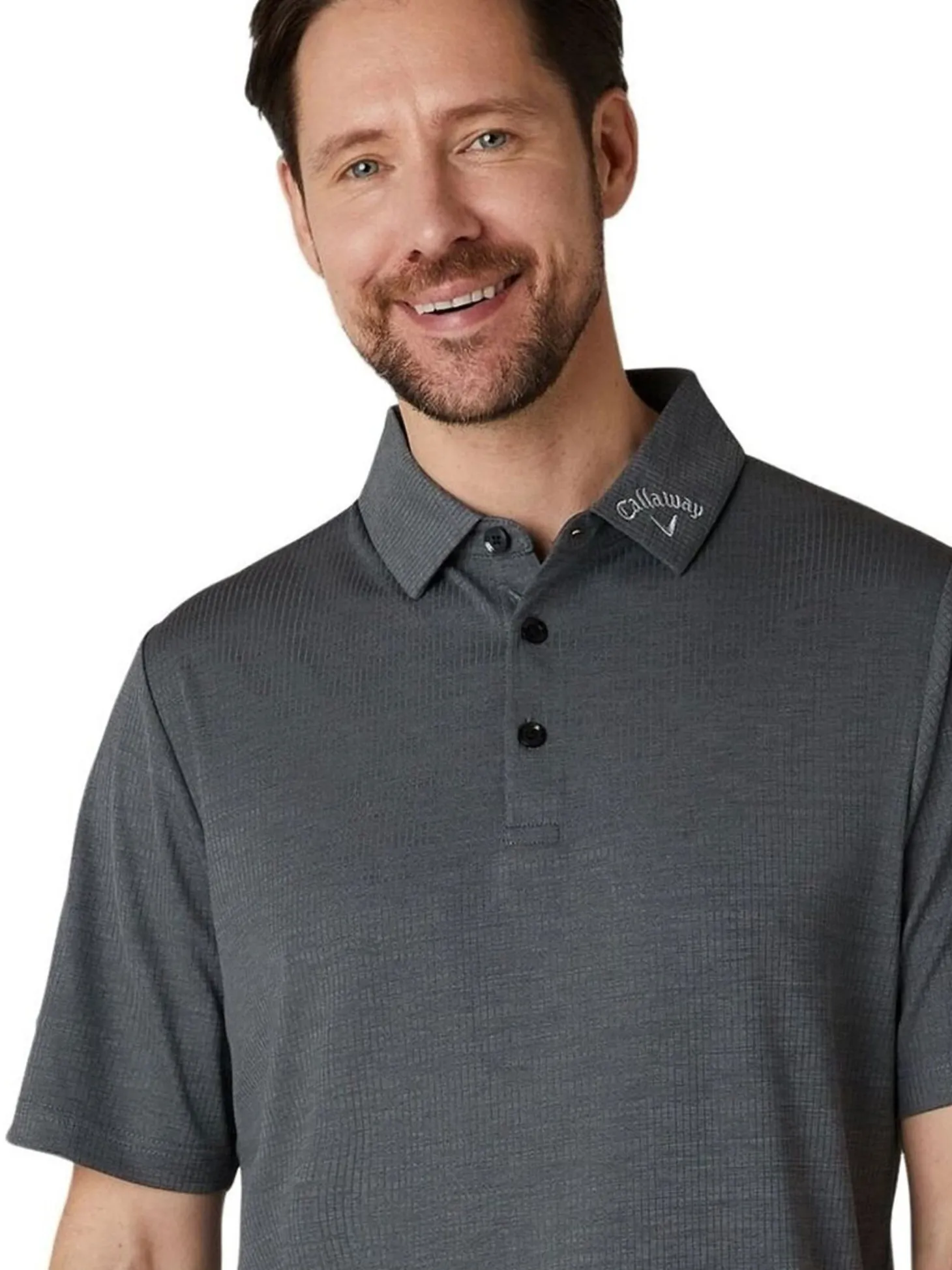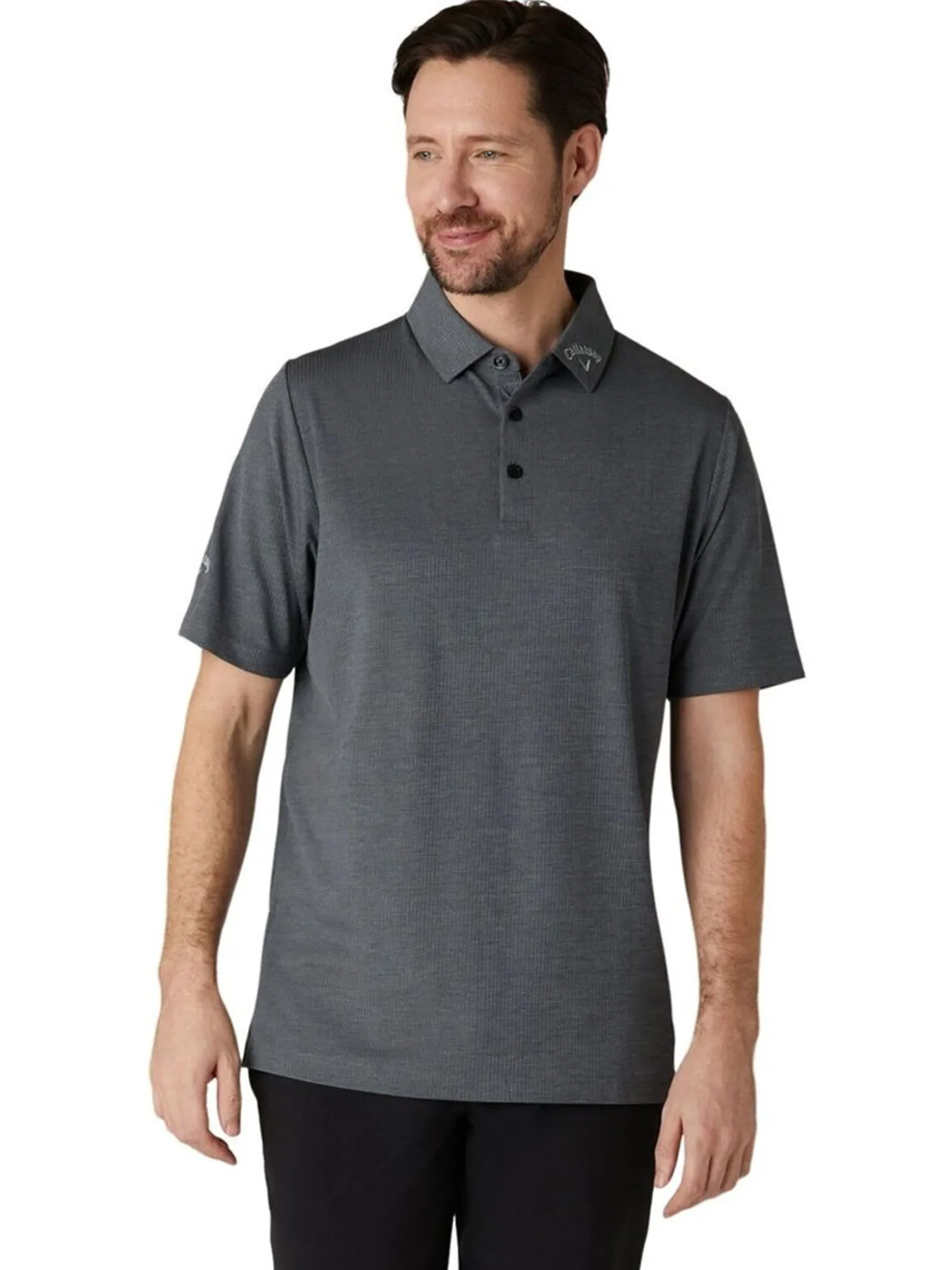 The Callaway Ventilated Classic Jacquard Golf Polo (Black) combines style and practicality. Designed with all-over ventilation and moisture-wicking technology, it helps you feel cool and dry during play. This golf top is finished with a textured jacquard pattern, making it a stylish addition to your golfing wardrobe.