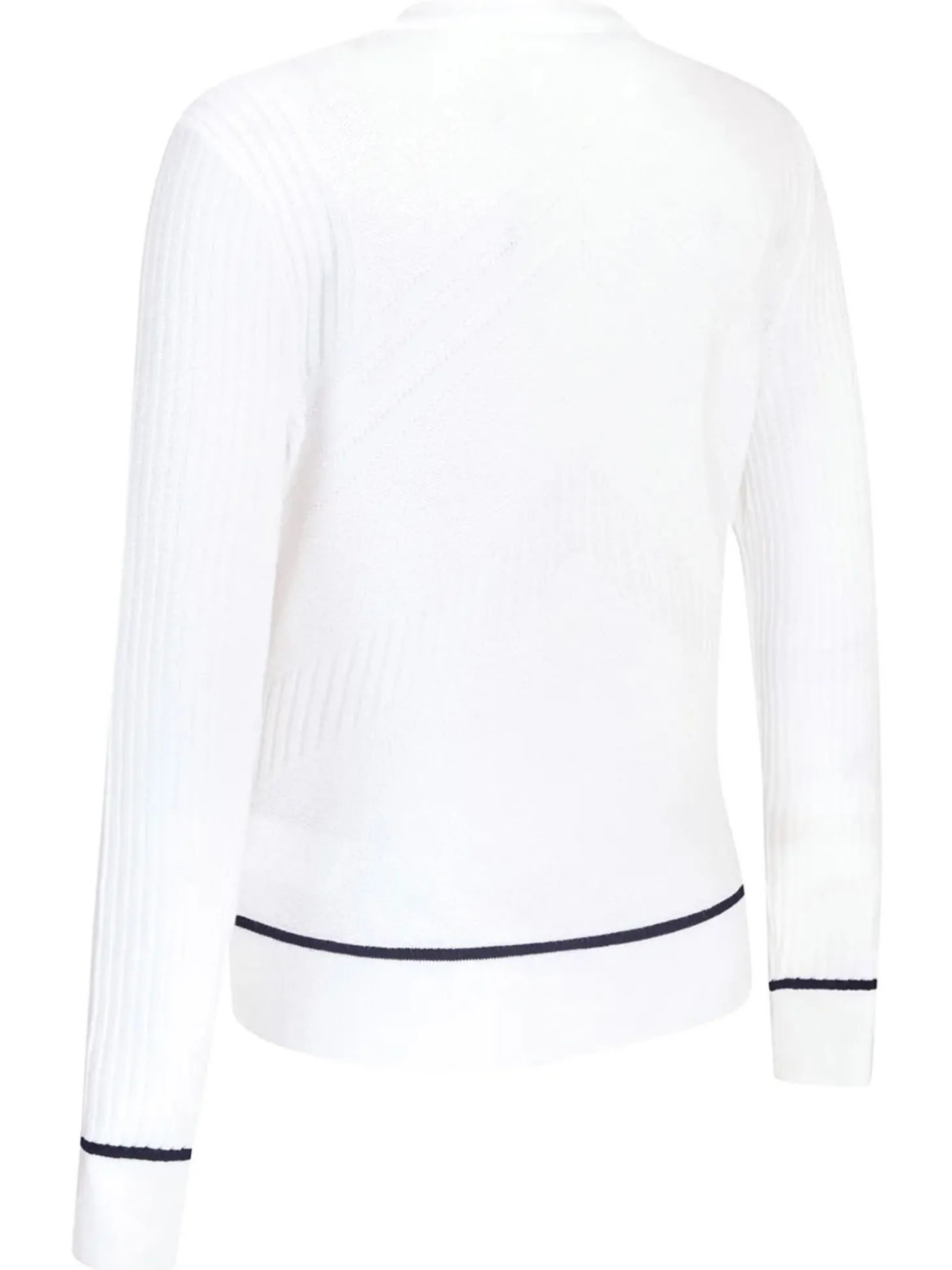 The Callaway Women’s Chev Sweater (White) is a practical addition to your golf clothing collection. Crafted from thermal fabric, this golf pullover helps you feel warm and comfortable as you play. With contrast colour piping and a stitched chevron pattern, this golf sweater has a classic sporty look you can wear after the game, too.