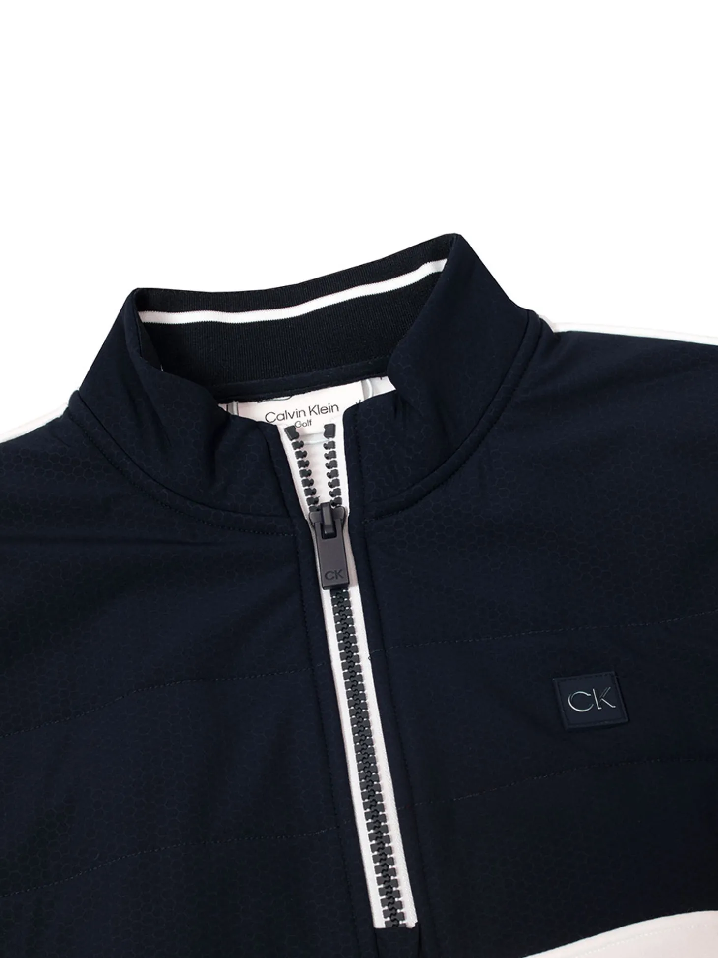 The Calvin Klein Atlantic Hybrid Half Zip (White) packs a punch against the ever-changing weather from the Chill Force product series—a striking transitional piece for your wardrobe this season. Featuring a woven padded front panel with attractive honeycomb pressing detail, this jacket will provide the warmth you need to play your best game. A contrasting colour stripe highlights the inside knitted collar for a pleasing colour pop.