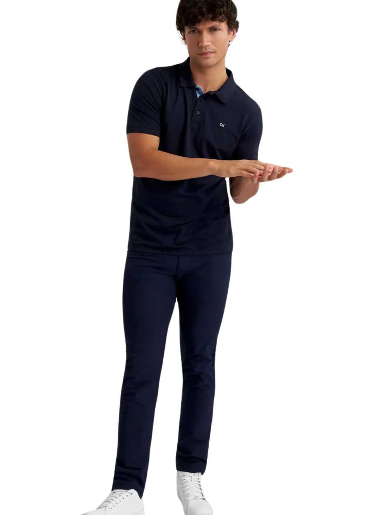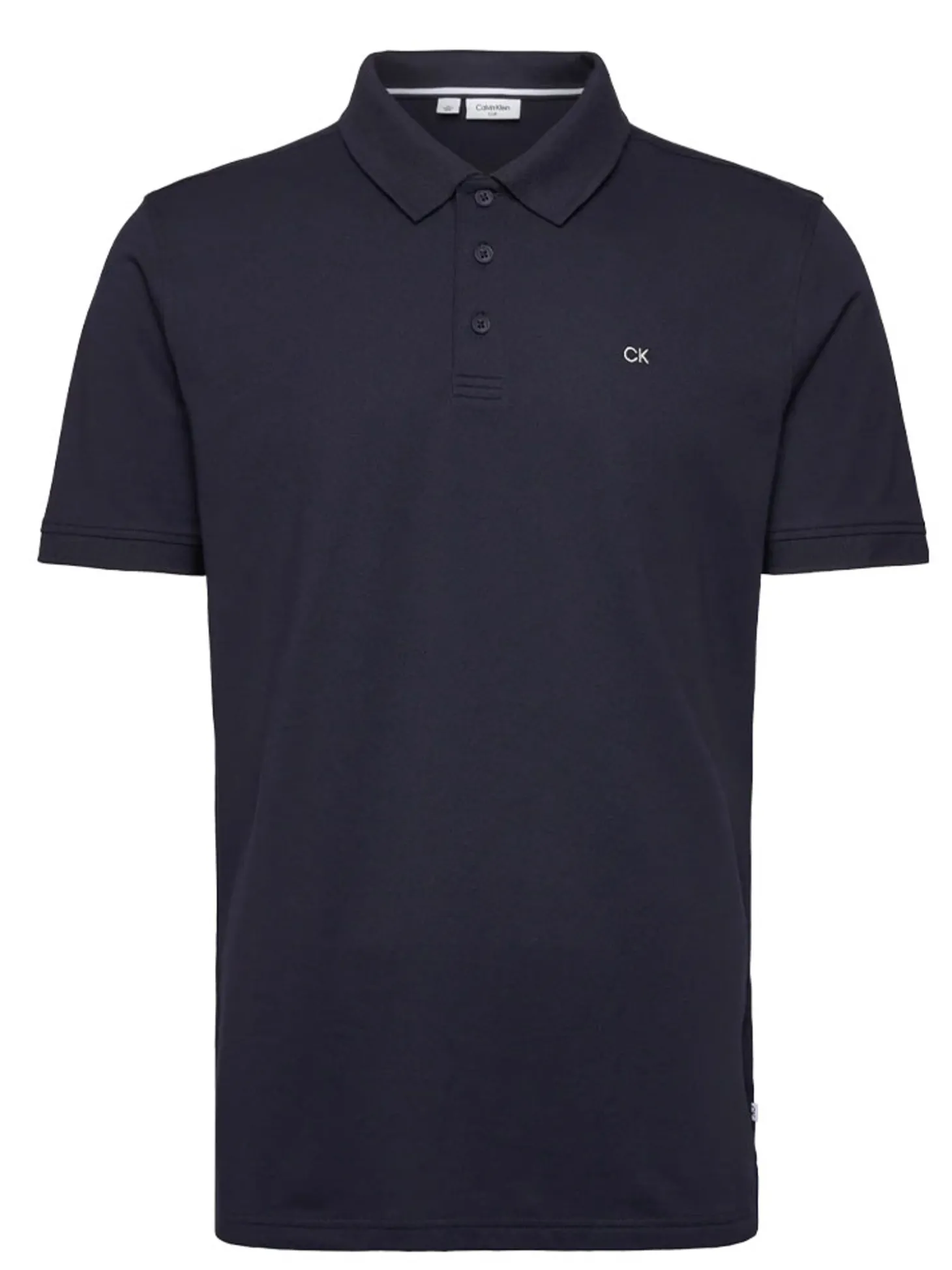 The Calvin Klein Cotton Blend Quad Polo (Navy) gives durable performance as a standard. The tri-blend pique knit fuses the softness of cotton with the performance of polyester to give you every advantage on the course. A classic 3-button placket, with contrast oxford fabric on the bottom placket, is enhanced by a touch of stretch and moisture-wicking style that makes this an instant wardrobe staple.