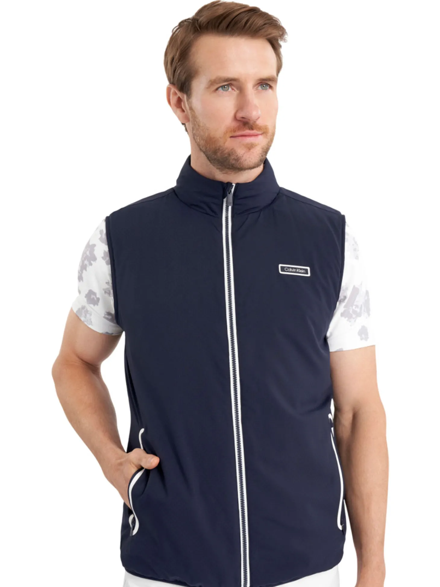 The Calvin Klein Trinity Lightweight Gilet (Navy) is the perfect summer layer for outdoor pursuits, combining an outer soft shell with an inner fleece lining for an exceptionally versatile garment this season. Providing an insulation shield, thanks to the lightweight padding, this gilet will keep your body warm without any swing restriction. Contrast trims at the front zip and pockets make for a youthful and sporty look.