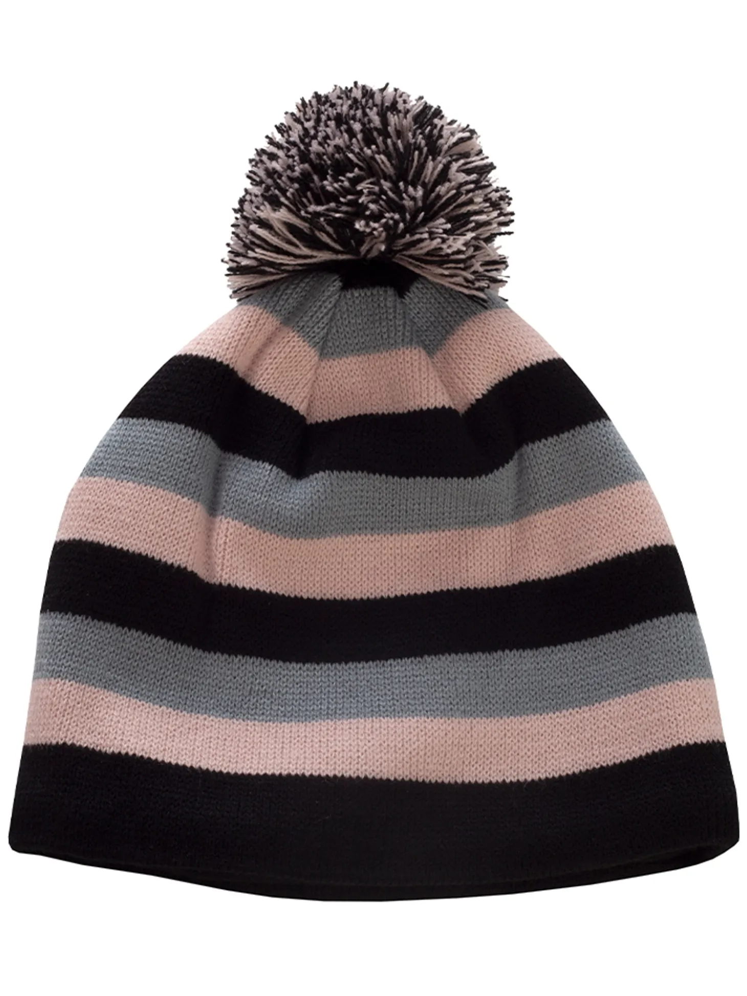 - Knit beanie with striking 3 colour stripe pattern on the back