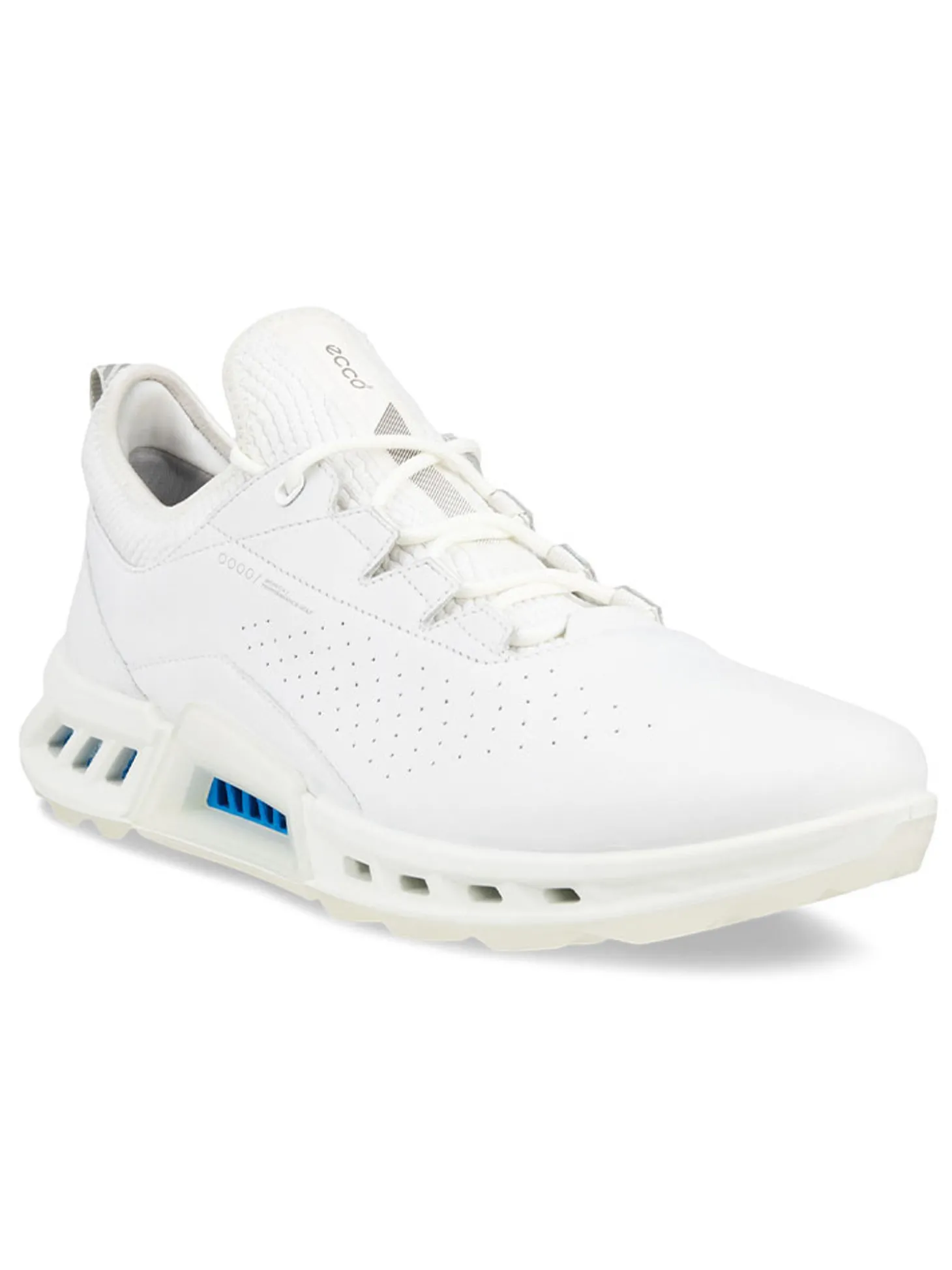 The Ecco BIOM C4 Golf Shoe (White) features breathable comfort and innovative performance mixed with a contemporary, sneaker-style aesthetic. The BIOM C4 is the next generation of golf shoes with 360-degree breathability and 100% waterproofing. The GORE-TEX SURROUND construction is combined with the EXHAUST GRID that enables air ventilation towards the sole of your foot. Crafted from ECCO Performance Leather with ECCO MTN GRIP outsole, and powered by BIOM NATURAL MOTION Technology.