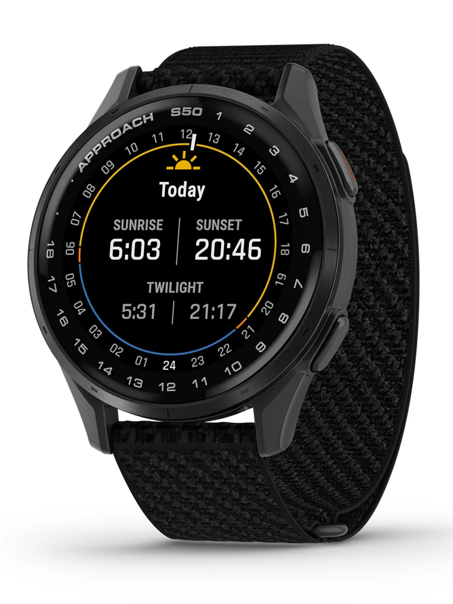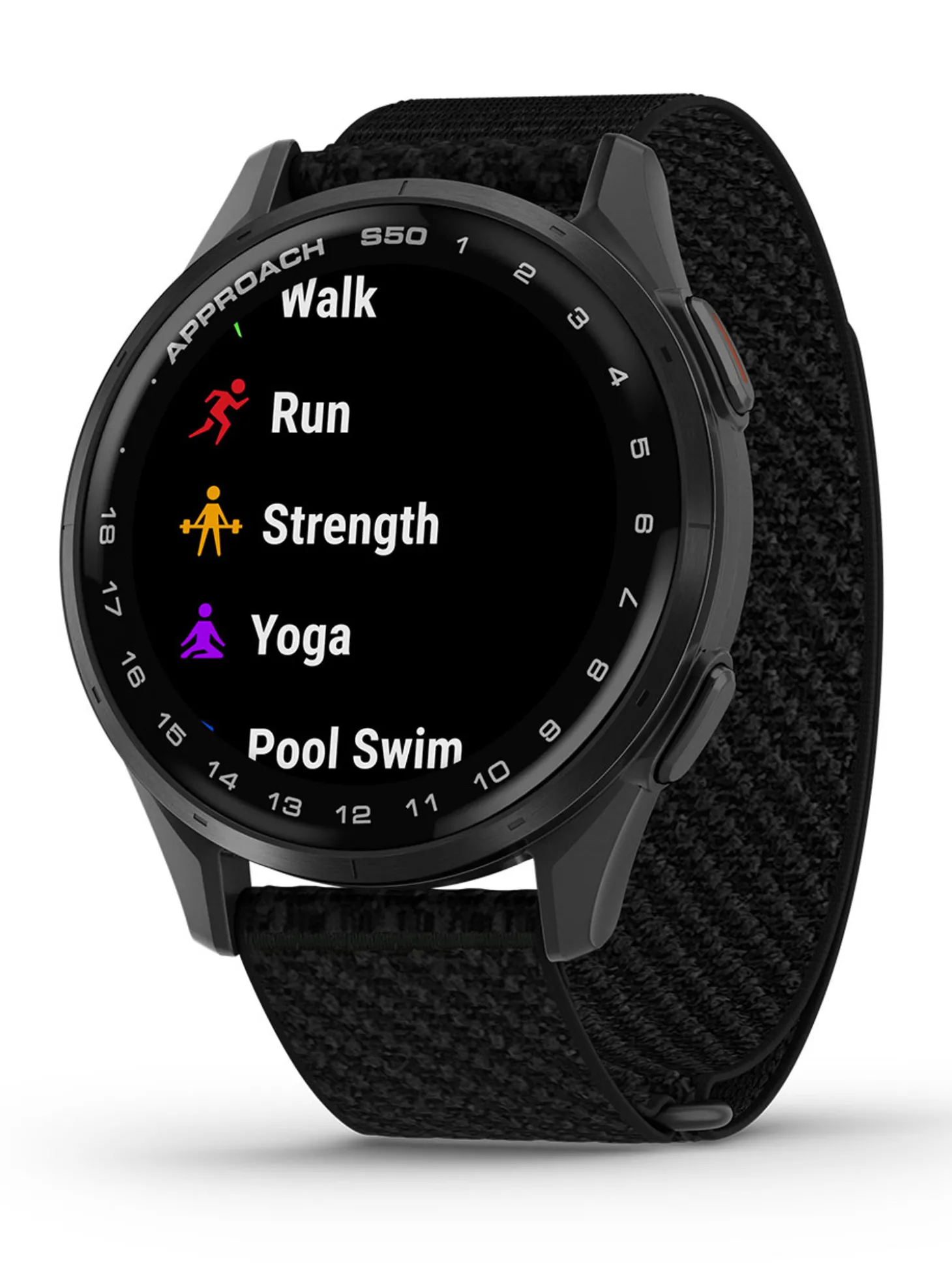 Approach S50 features a sleek, comfortable nylon band with a hook and loop design for all-day wear.