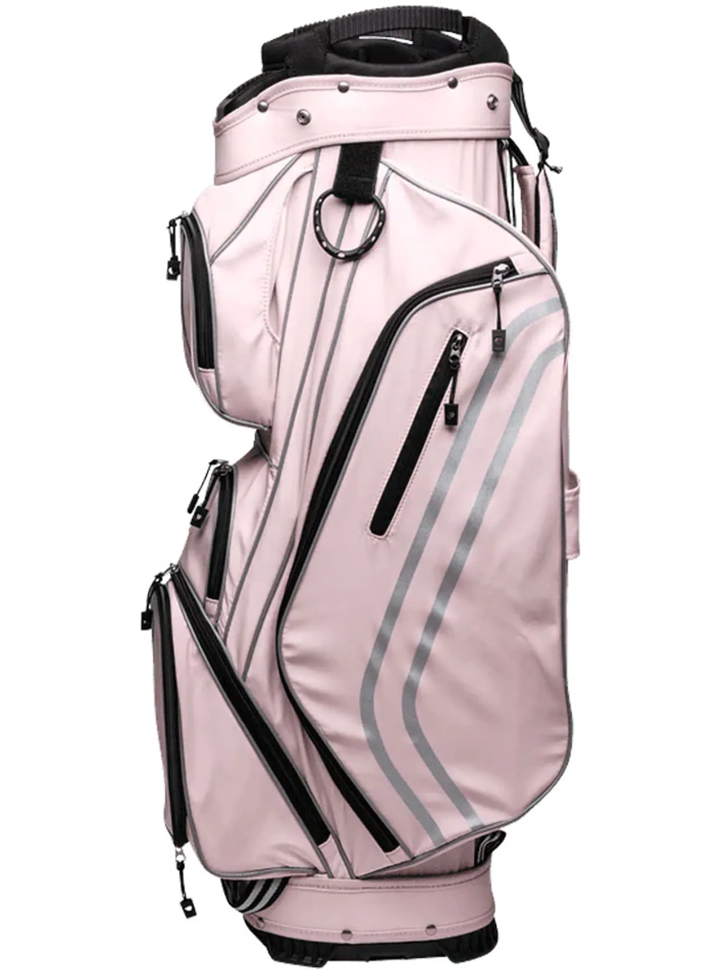 The Glove It Women’s Cart Bag (Fore Ever Pink) comes in the signature line of fun and energetic shade. Each golf bag features 15 full-length dividers, easy-access pockets, and an easy-lift handle system. Glove It golf bags are a must-have for any fashion-forward golfer!