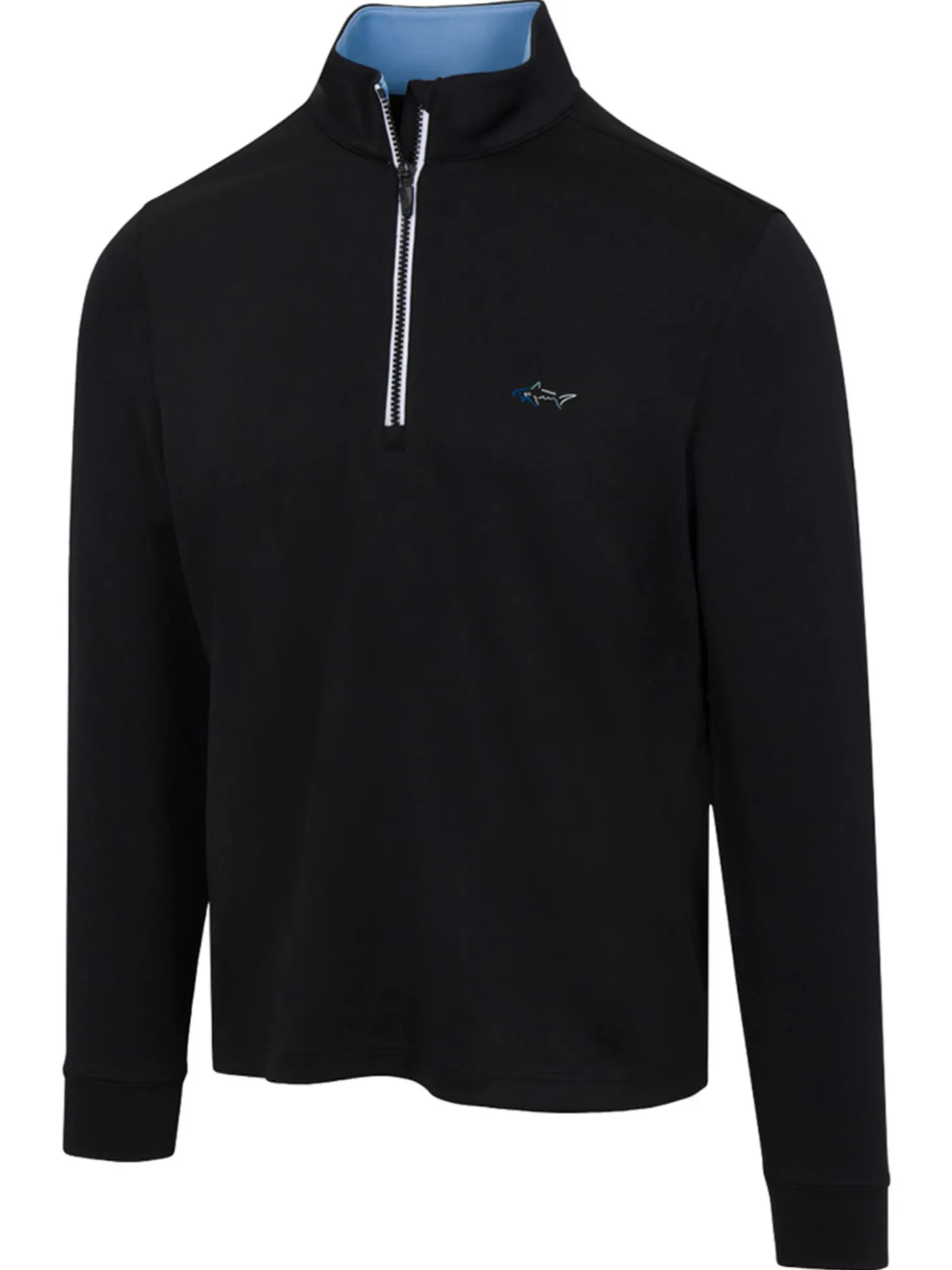 The Greg Norman 1/4 Zip Pullover (Black) boasts advanced fabric benefits such as moisture-wicking and performance stretch. A timeless silhouette with the iconic Shark logo on the left chest, it’s the perfect mid-weight layer for your everyday.