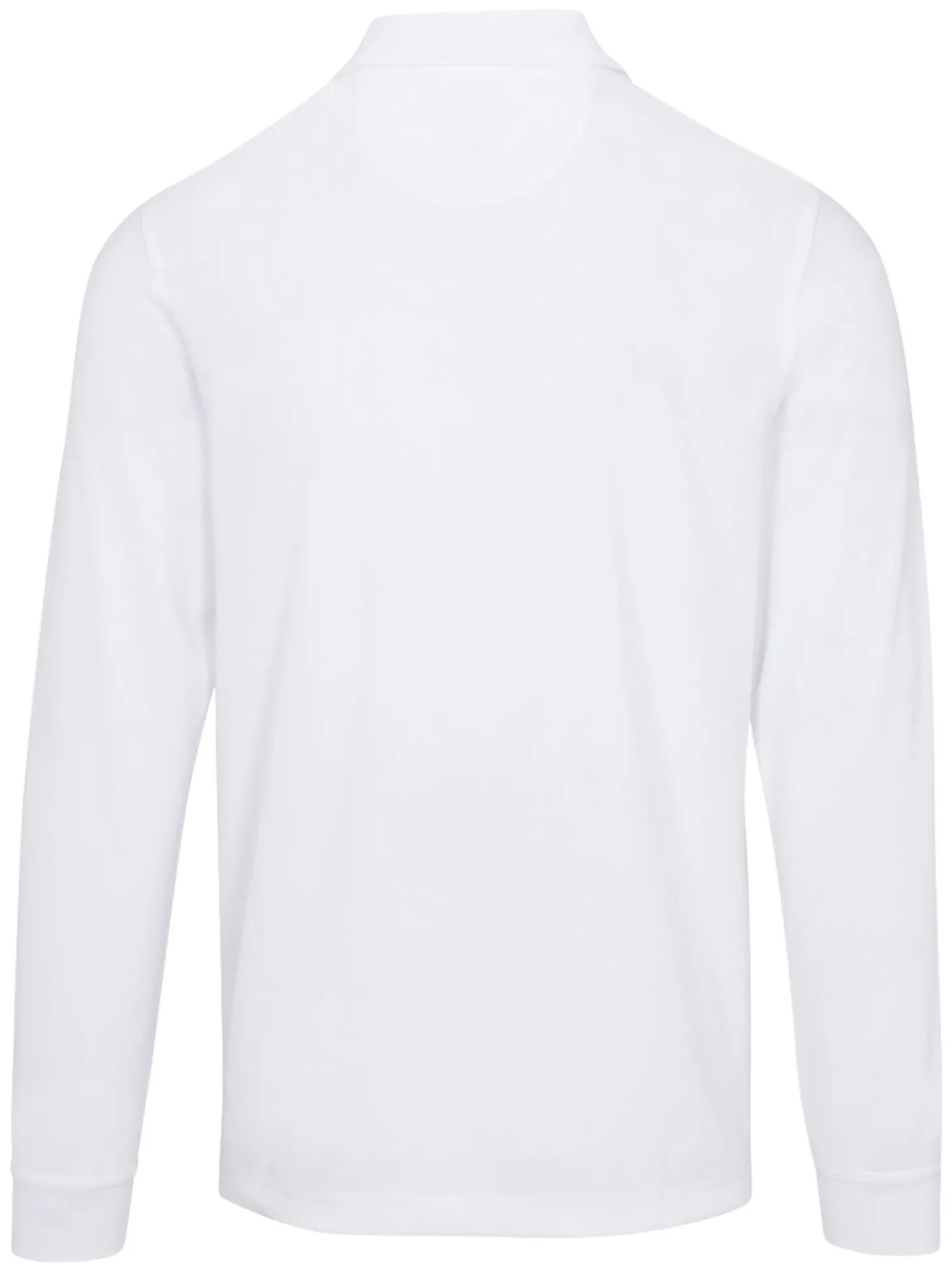 The Greg Norman Long Sleeve Pique Shark Polo (White) is crafted from a breathable pique polyester fabric featuring moisture-wicking PLAY DRY technology, capped off with a knit collar and signature embroidered Shark logo on left chest.