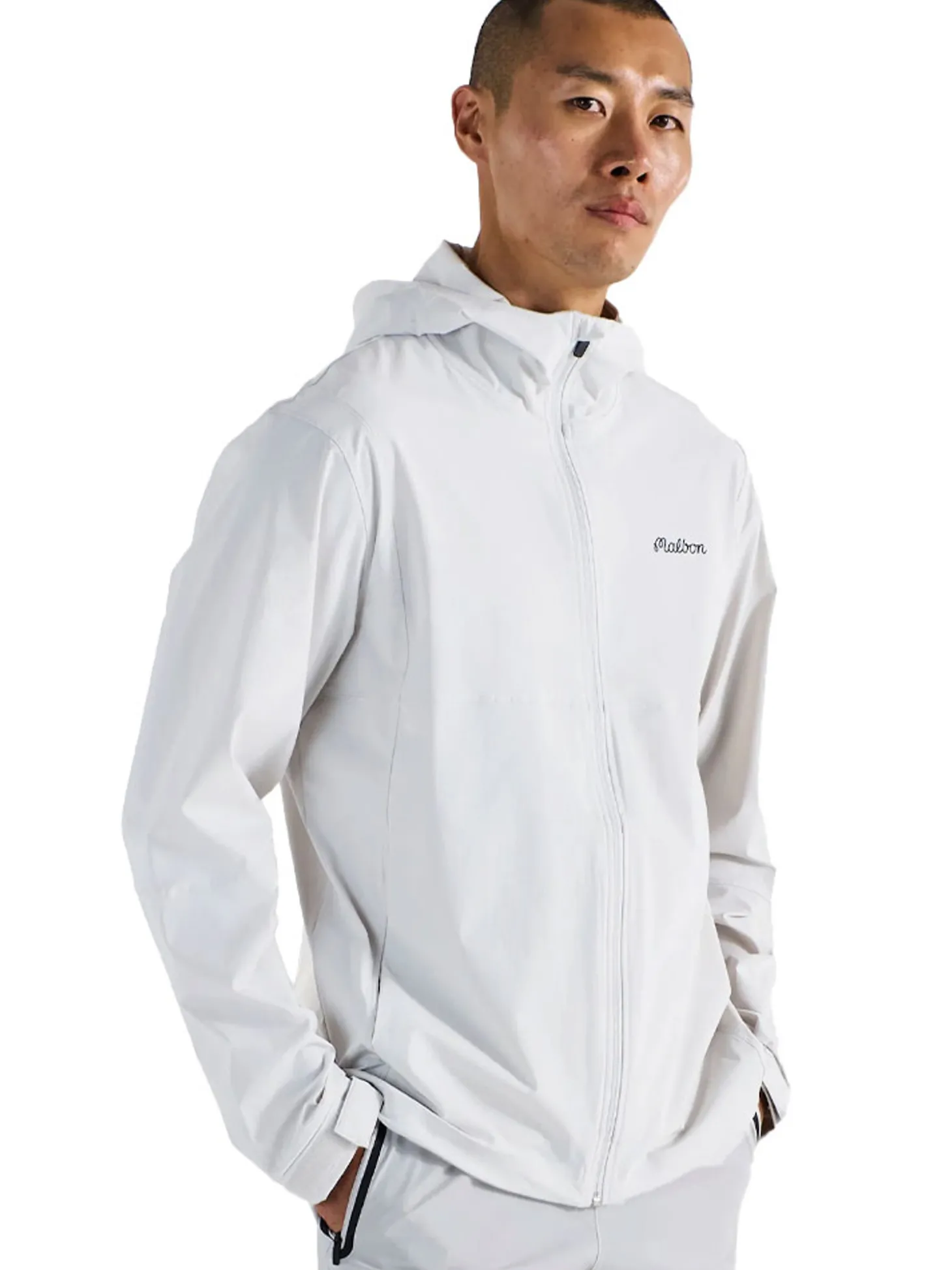 The Malbon Performance Full Zip Shell Jacket (White) will let you experience unparalleled performance. Complete with the iconic Malbon Script logo screenprinted on the left chest and back, this jacket sets the standard for elevated athletic apparel.