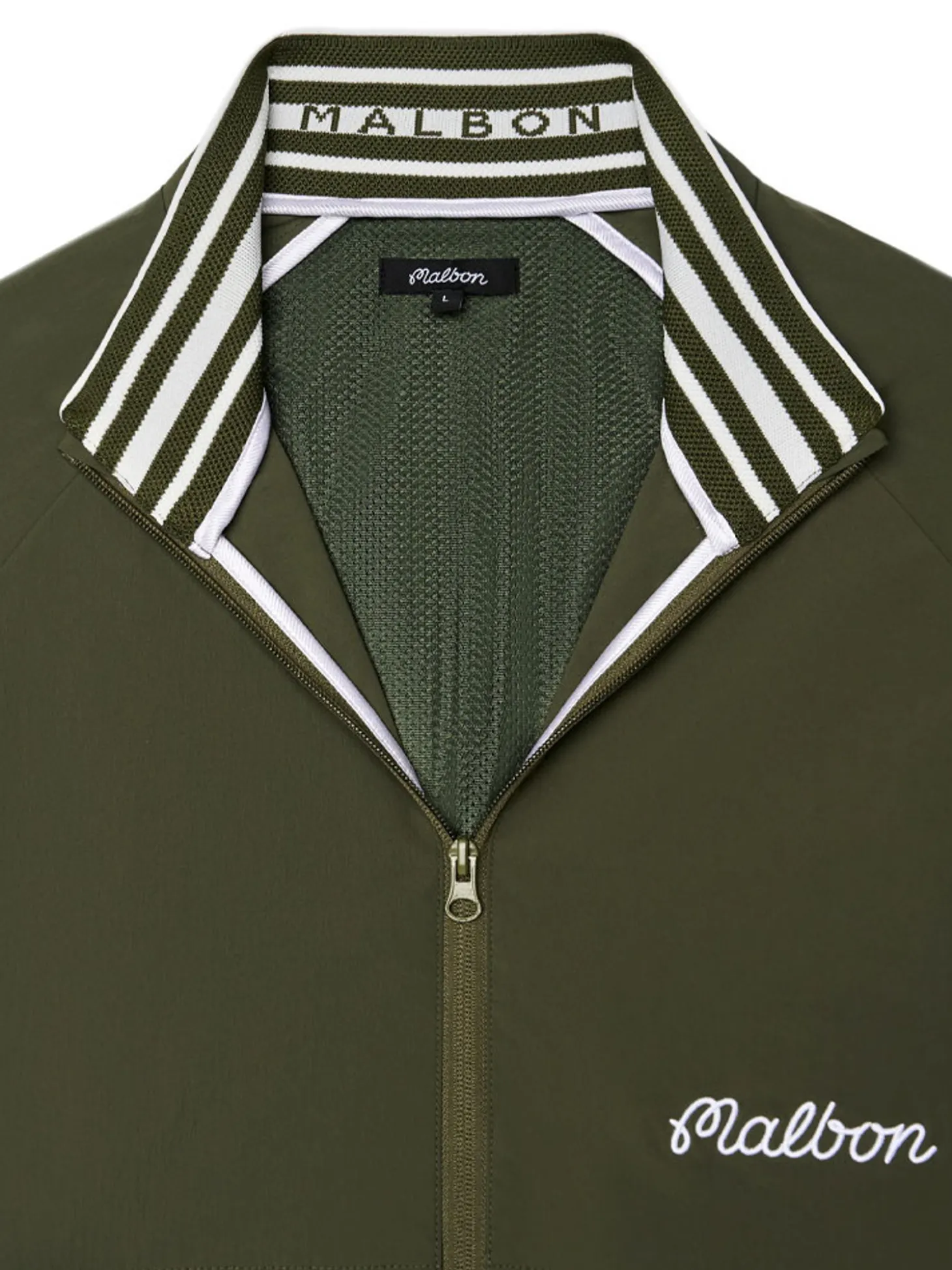 - Embroidered Malbon script logo on left chest
