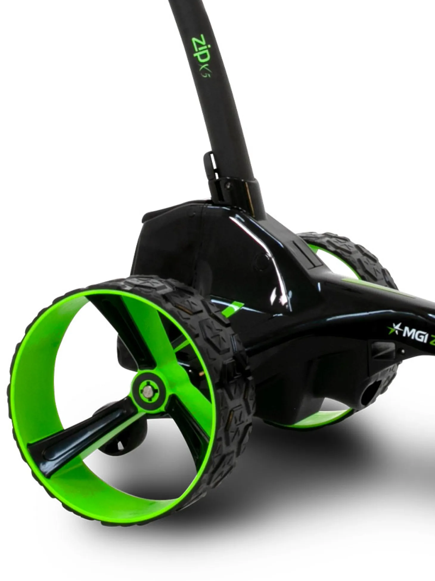 Make it a level playing field with the MGI Zip X5 with the ingenious advantage of Downhill Speed Control and an Electronic Park Brake. The downhill speed control eliminates the need for the golfer to manually adjust the speed control when walking downhill creating an effortless, weightless transition on all downhill terrains. Such a feature allows the golfer to focus only on the next shot, leading to lower scores and increased satisfaction. Plus, park on any incline by activating the electronic brake at the press of a button.