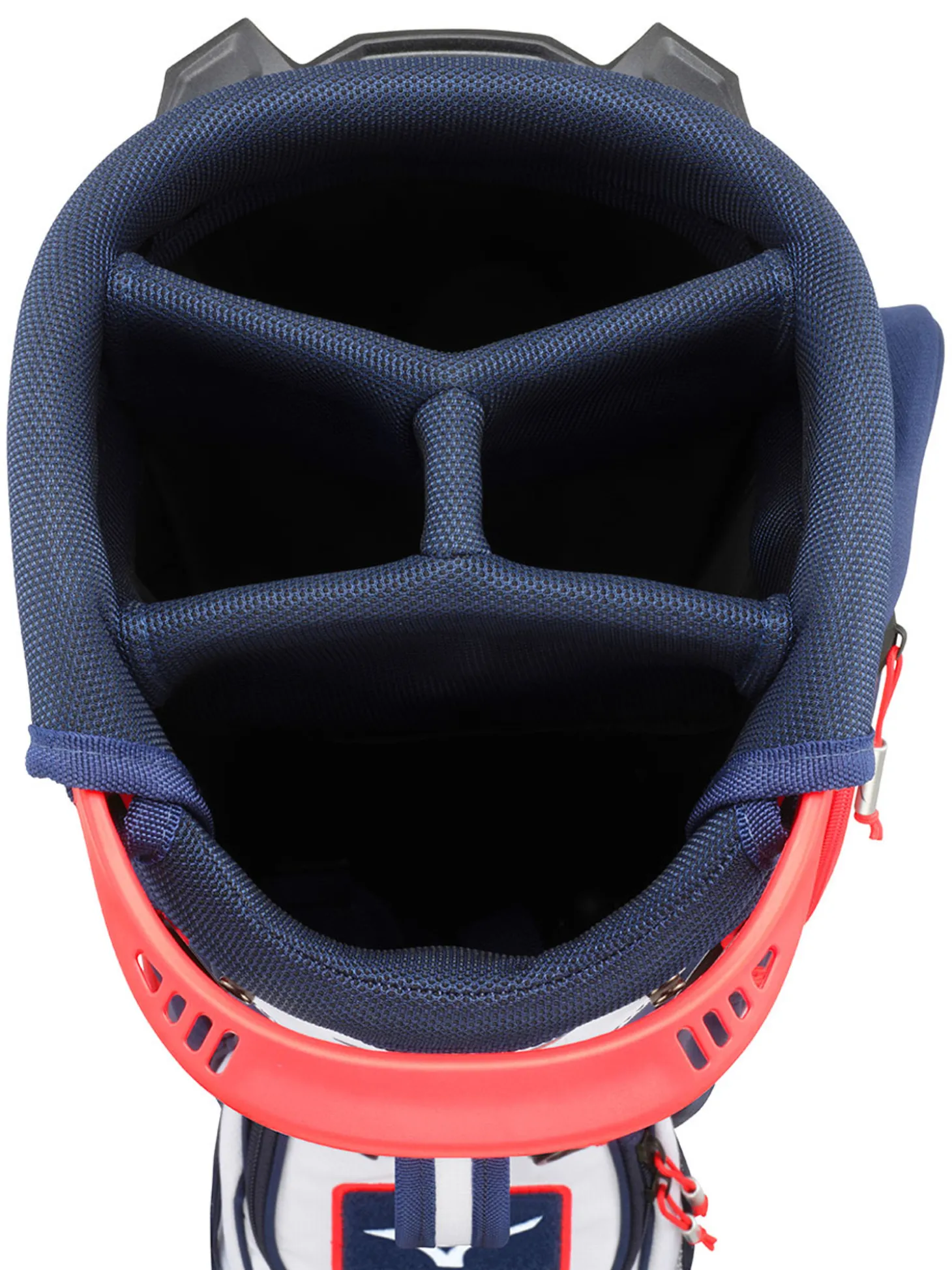The Mizuno BR-D3 Stand Bag makes every step a little easier. Stripped back to 8 critical pockets and compartments – with a brand new ultra-comfortable shoulder strap. Features full length apparel pocket and insulated drink pouch. Weighs in at 4.5 pounds.