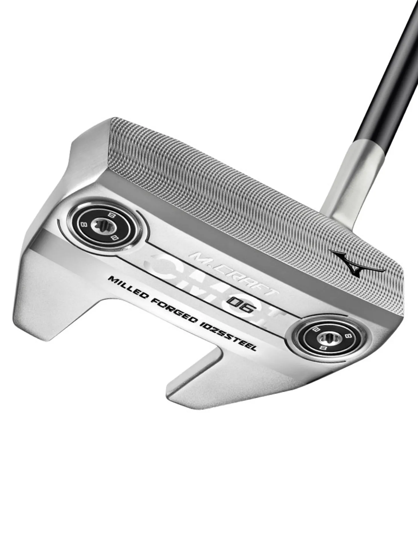 The Mizuno M.CRAFT OMOI #6 Putter features a winged mallet with slant neck and 35-degree toe hang.