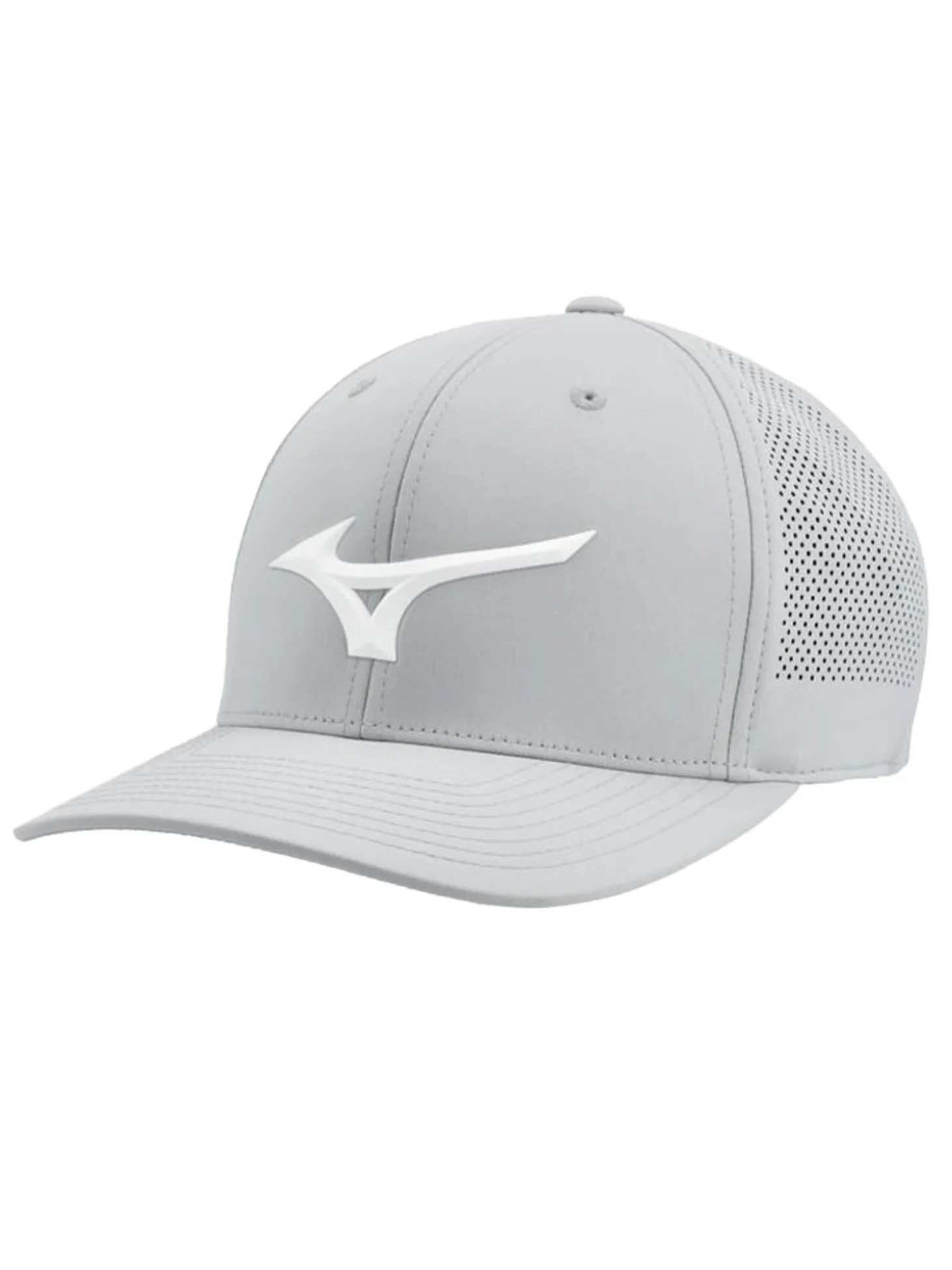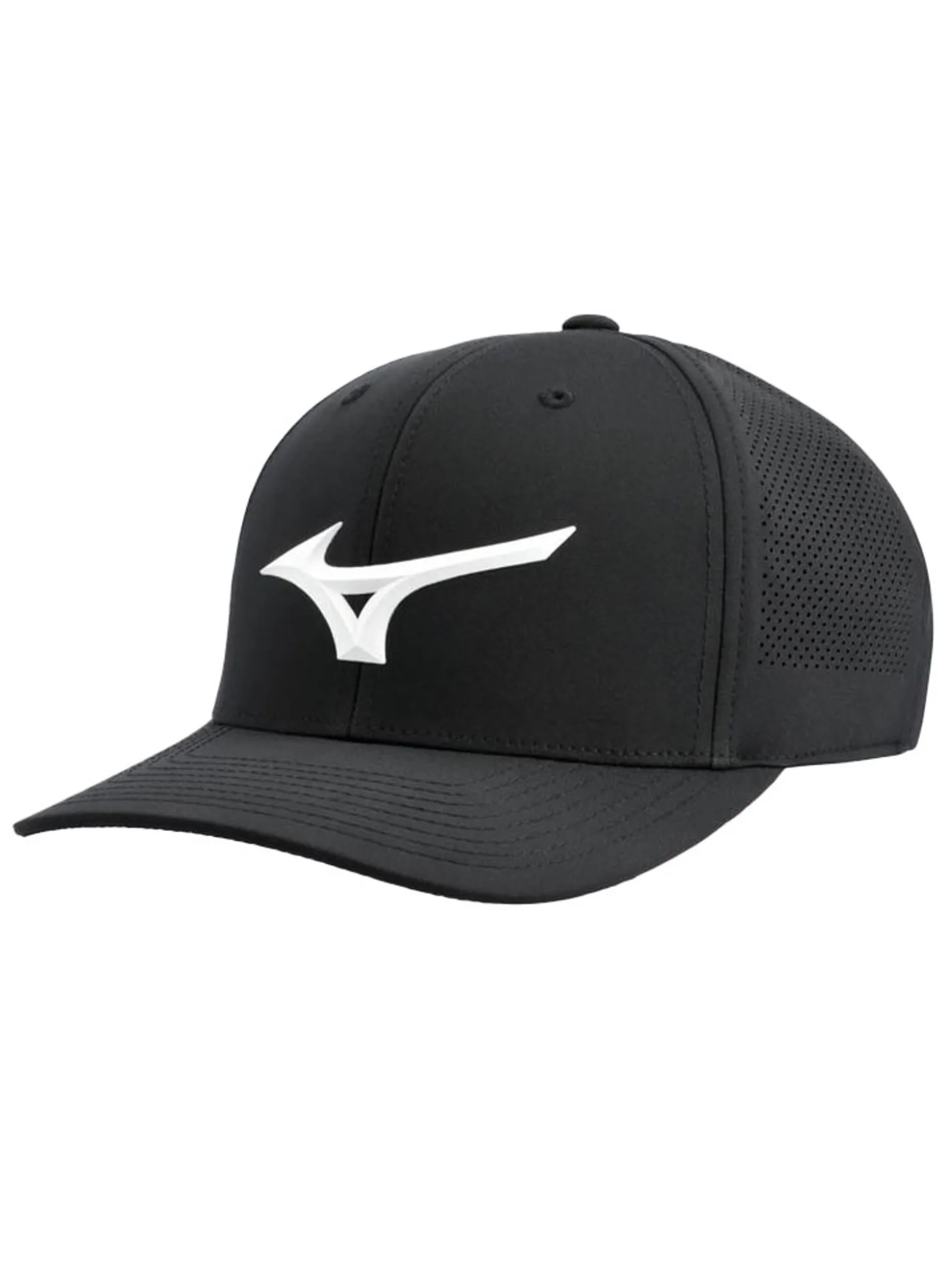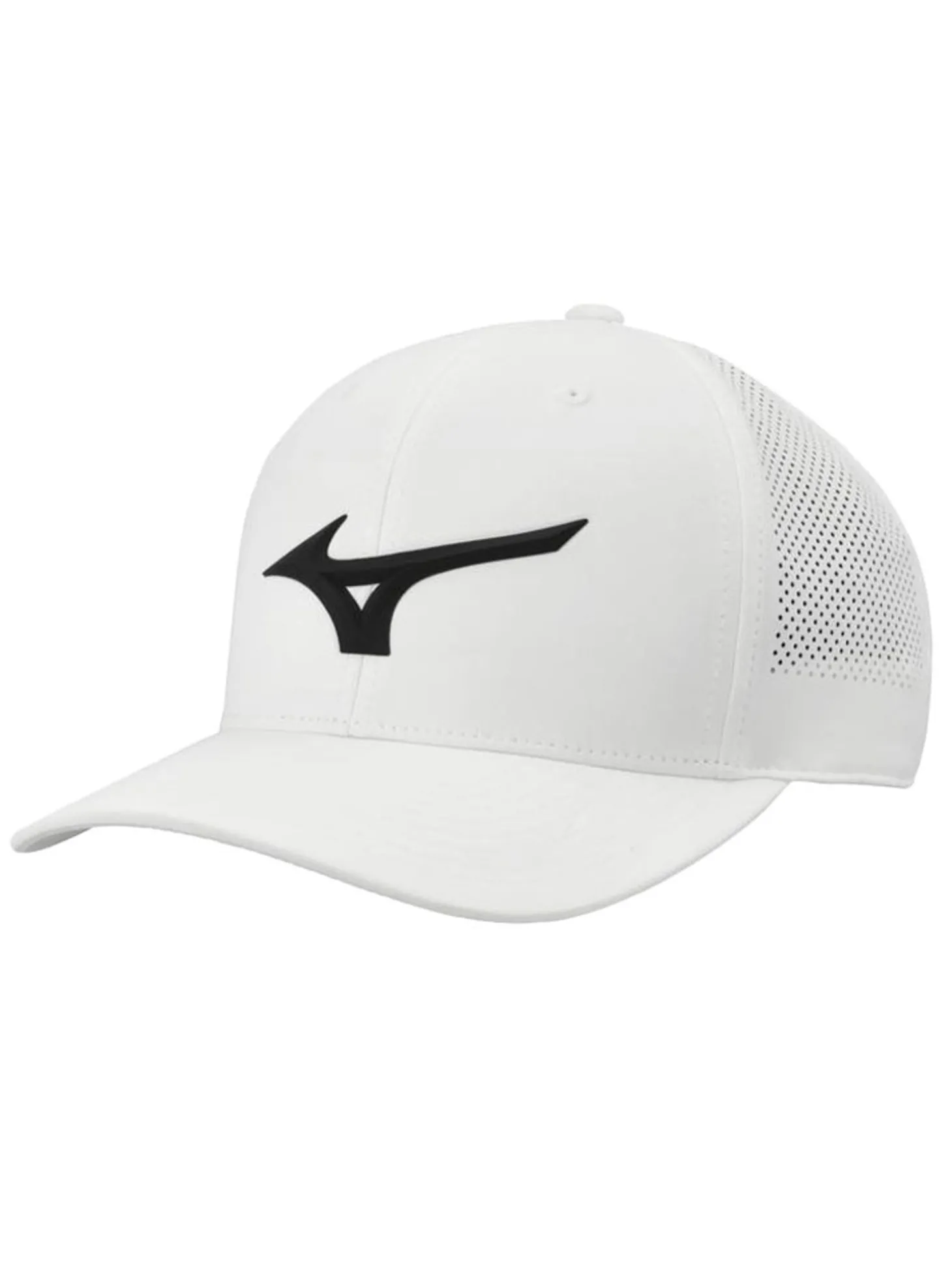The Mizuno Tour Vent Snapback Cap is a lightweight, moisture-wicking, 6-panel structured cap. The ultimate one-size-fits-all cap, mastering comfort and versatility, featuring their 3D MIZUNO RUNBIRD logo.