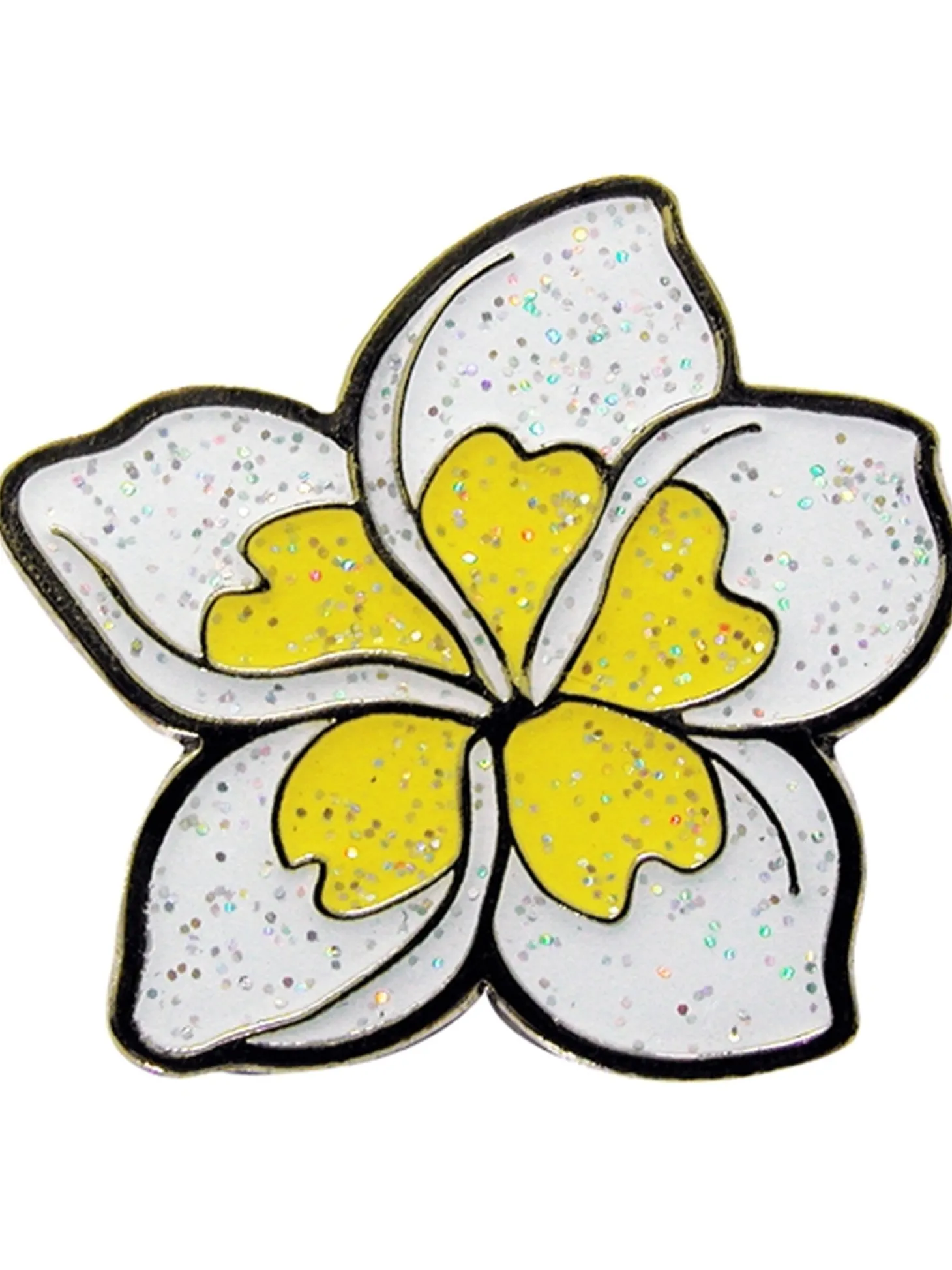 The Navika Glitzy Plumeria Ball Marker shows off your fun sparkling style on the green.