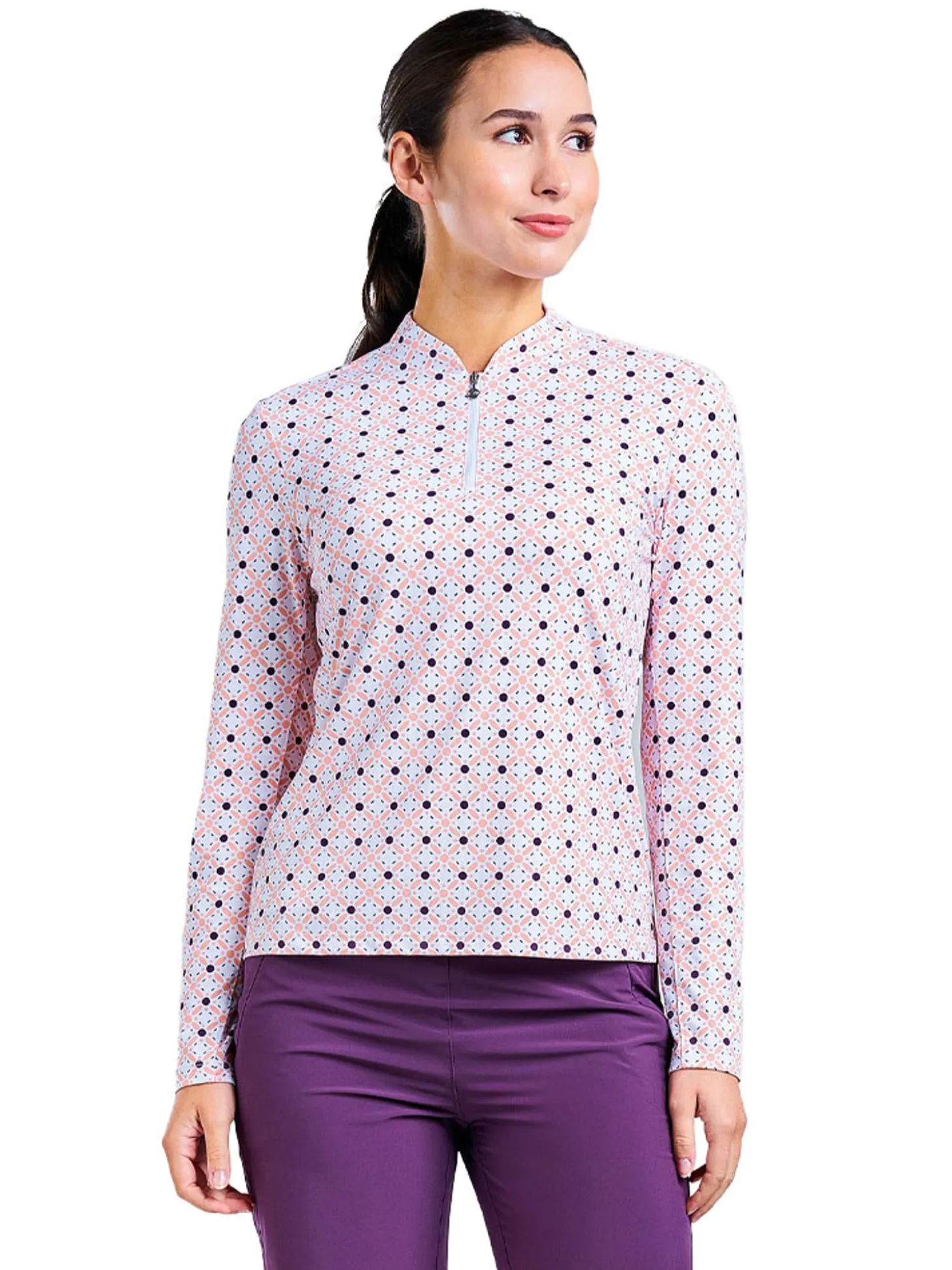 The Nivo Lolita Long Sleeve Mock (Coral) is perfect for keeping you cool while covered up. Stay dry and cool all day long thanks to the moisture-wicking properties and cooling fabric of this piece. Its fabric lets air circulate easily, making it ideal in summer or if you get too hot when you’re focusing on your swing!