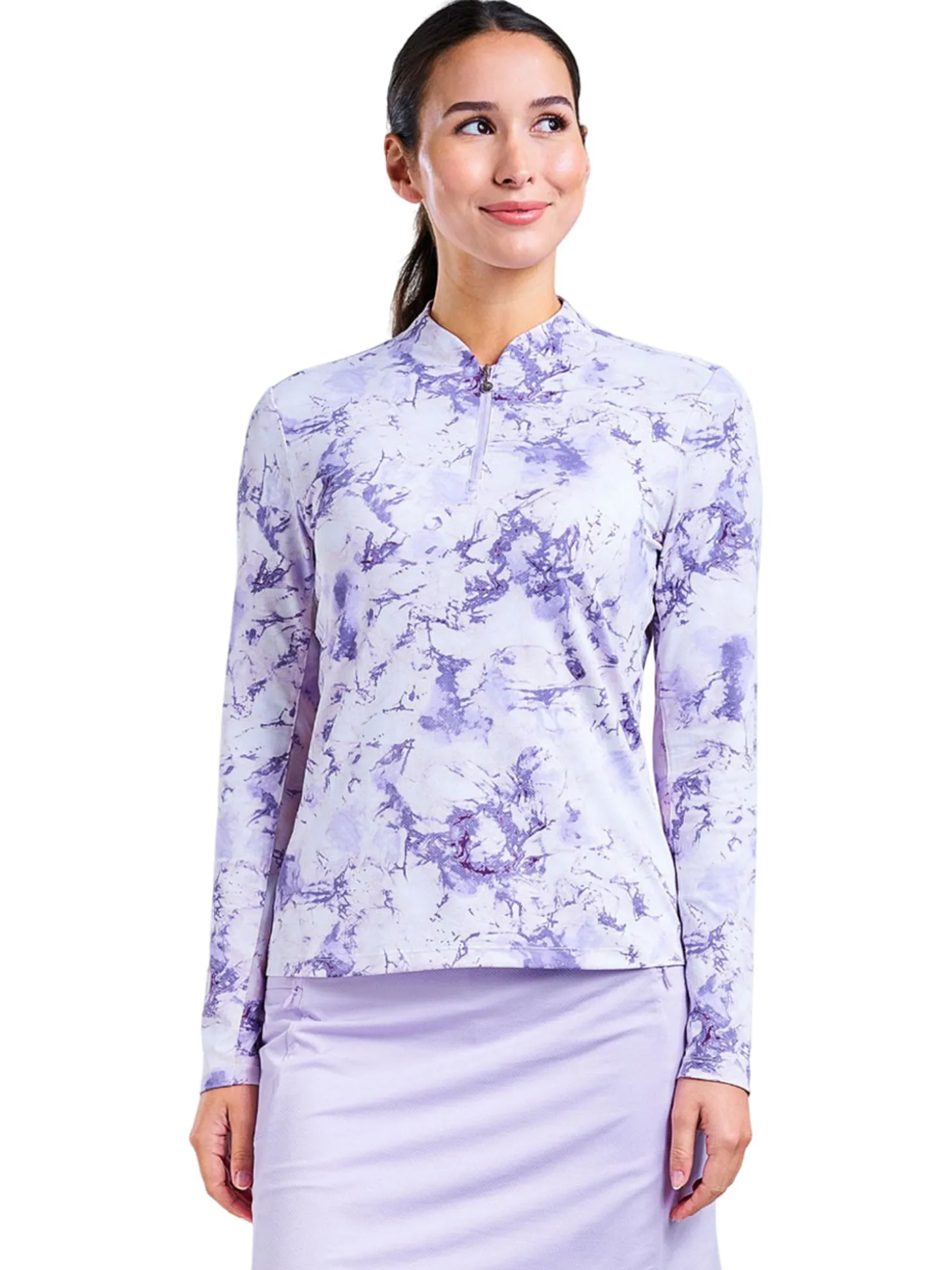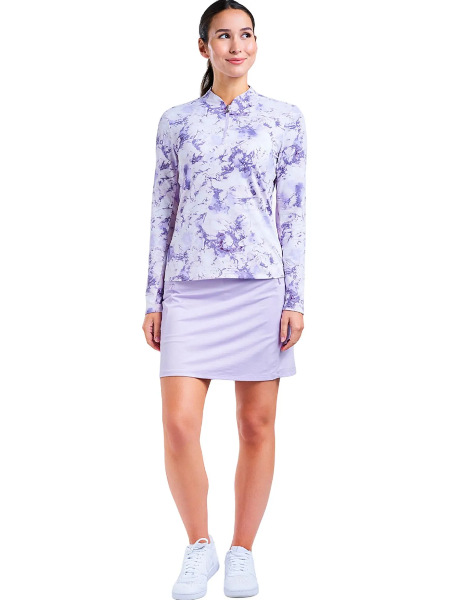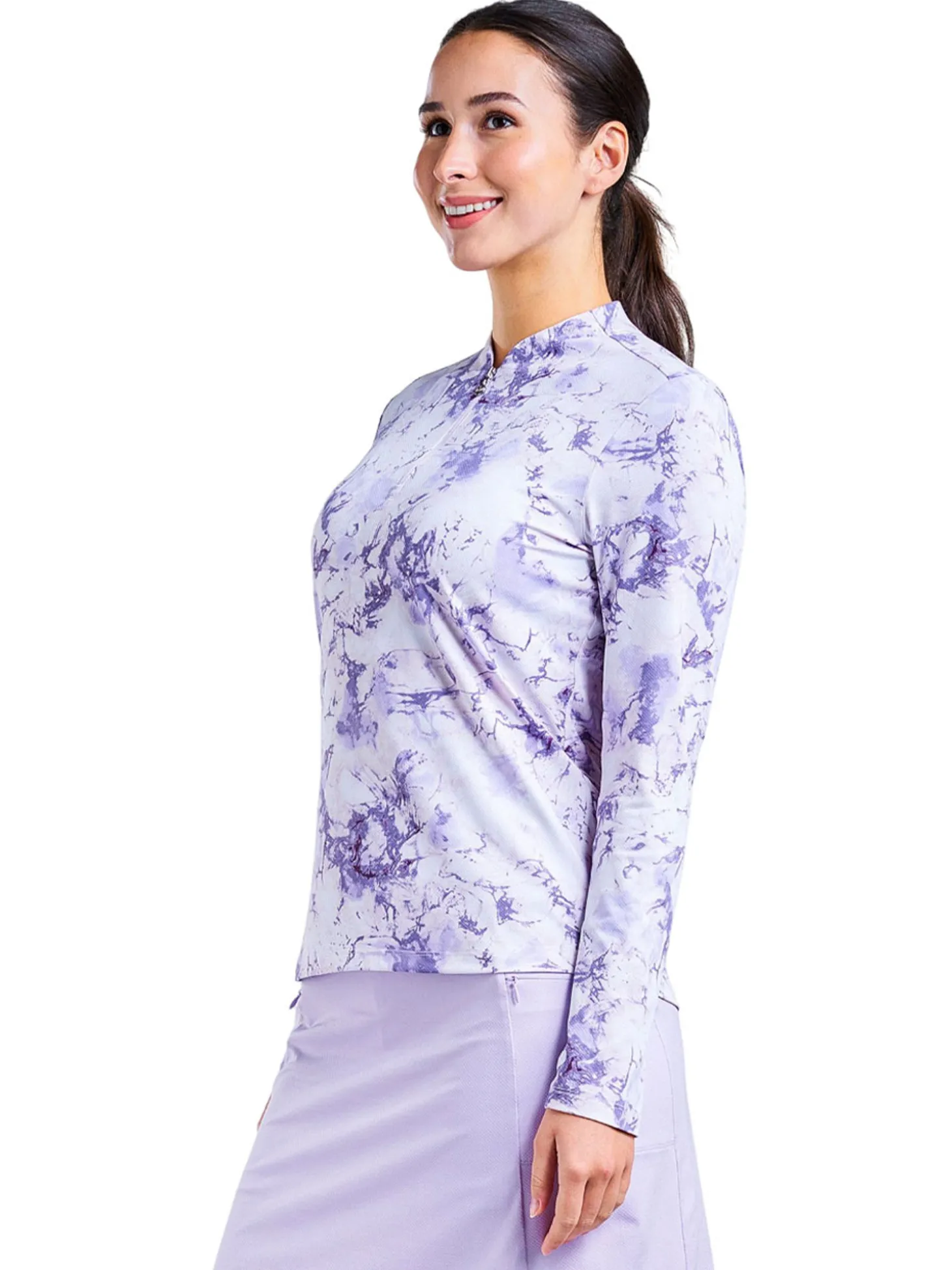 The Nivo Lolita Long Sleeve Mock (Lavender) is perfect for keeping you cool while covered up. Stay dry and cool all day long thanks to the moisture-wicking properties and cooling fabric of this piece. Its fabric lets air circulate easily, making it ideal in summer or if you get too hot when you’re focusing on your swing!