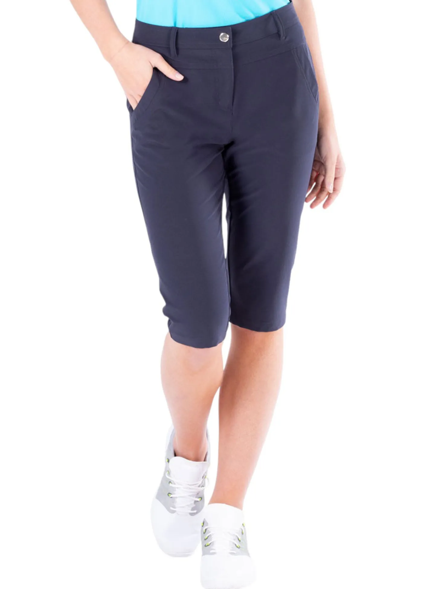 The Nivo Mandy Short (Navy) completes your closet. With its contour waistband and 4-way stretch fabric, this perfect long short is style and comfort in one.