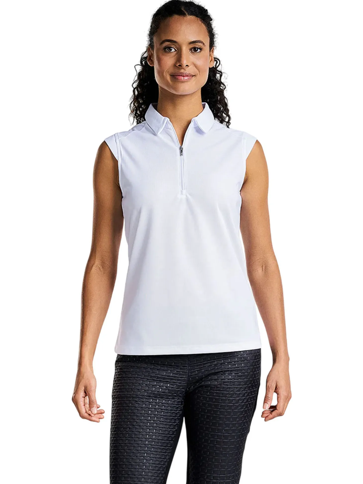 The Nivo Nikki Polo (White) is both flattering and functional. Stay comfortable on those warm days with UPF protection and moisture-wicking, quick-dry fabric.