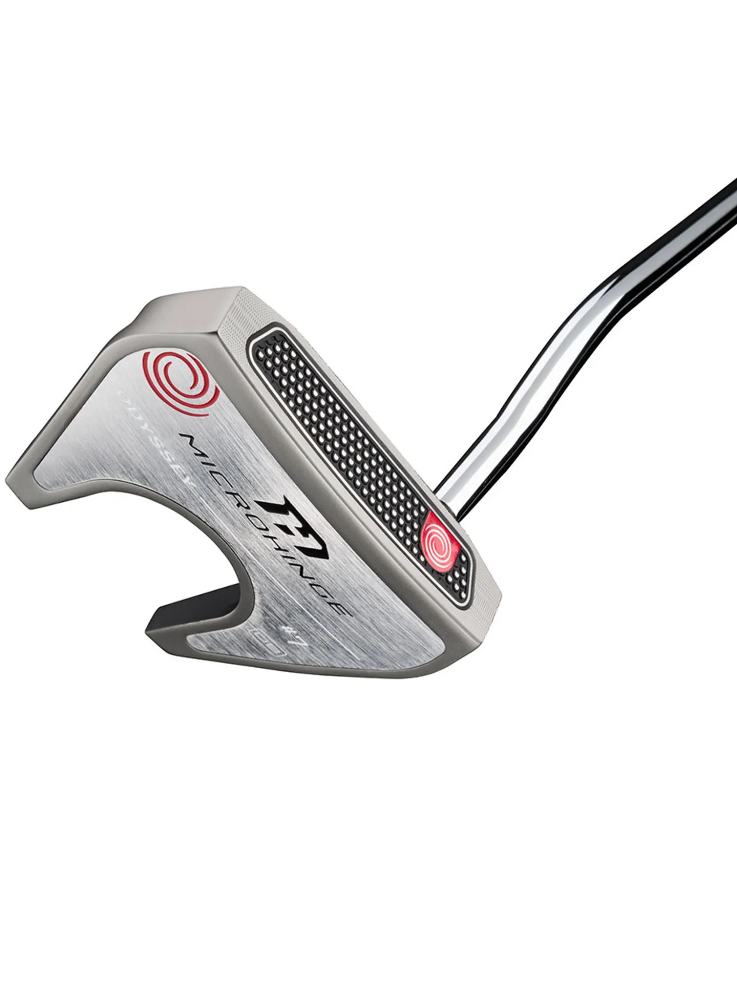The Odyssey Microhinge Putter (Seven) features the original Microhinge insert, delivering best in class roll, and Versa alignment to make it easy to aim. This high-performance putter is available in classic Odyssey shapes and comes in a striking silver and black finish.
