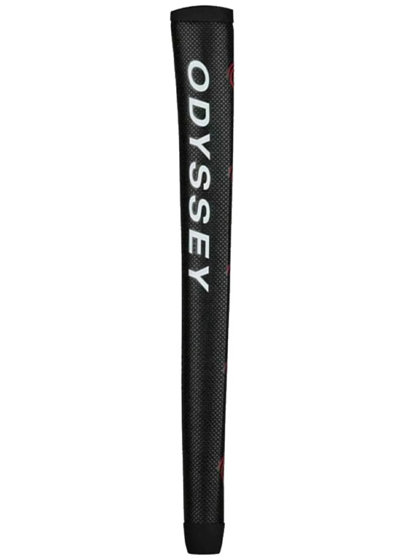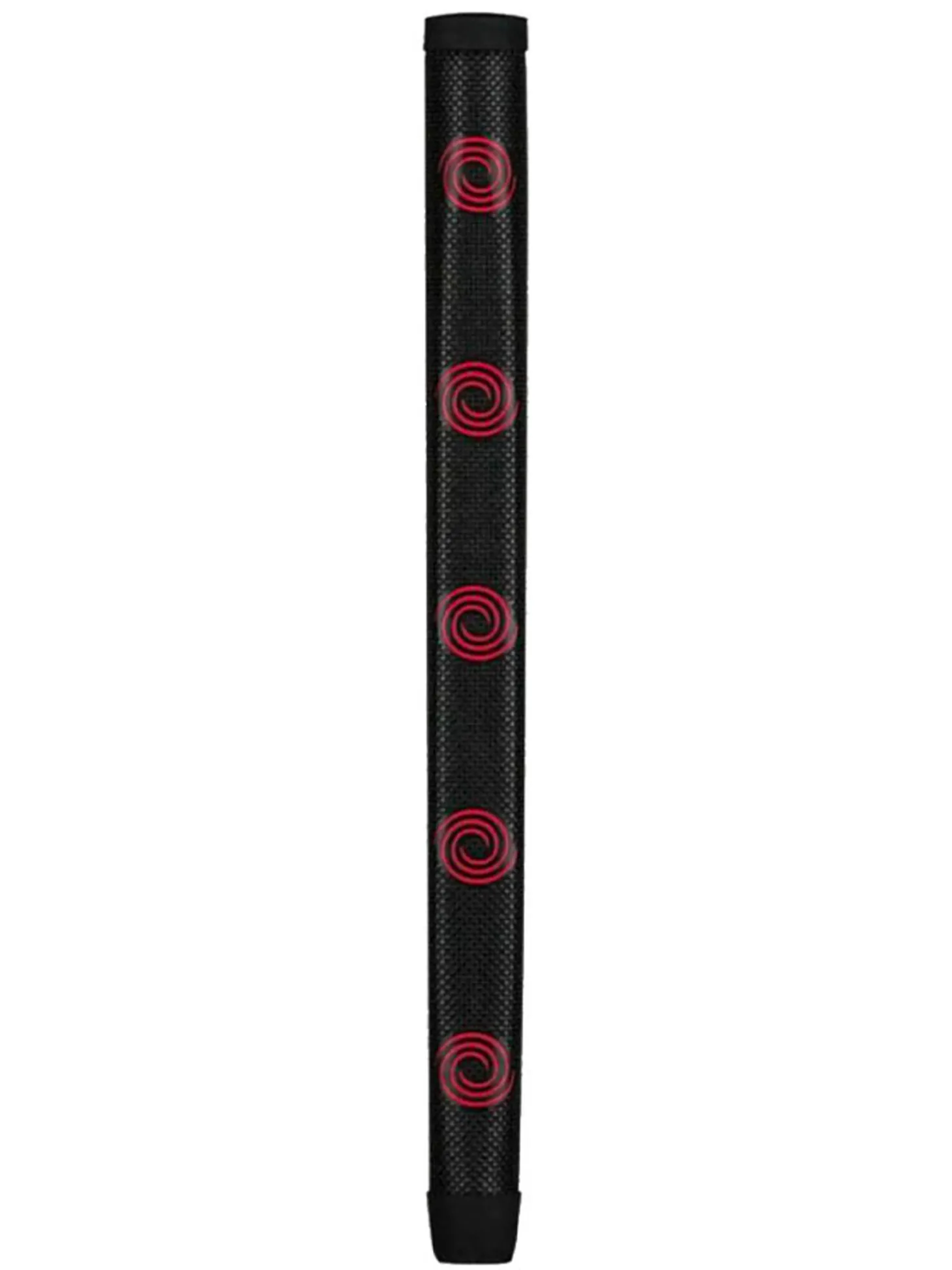 The Odyssey Swirl Putter Grip is what you need. With a slightly larger grip size, this grip is designed to eliminate wrist and forearm movement guaranteeing quality shots at every green. The Oddysey Grip is designed with the classic Oddysey swirl.