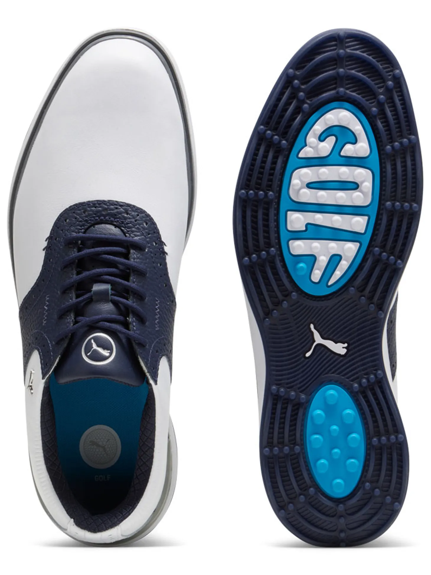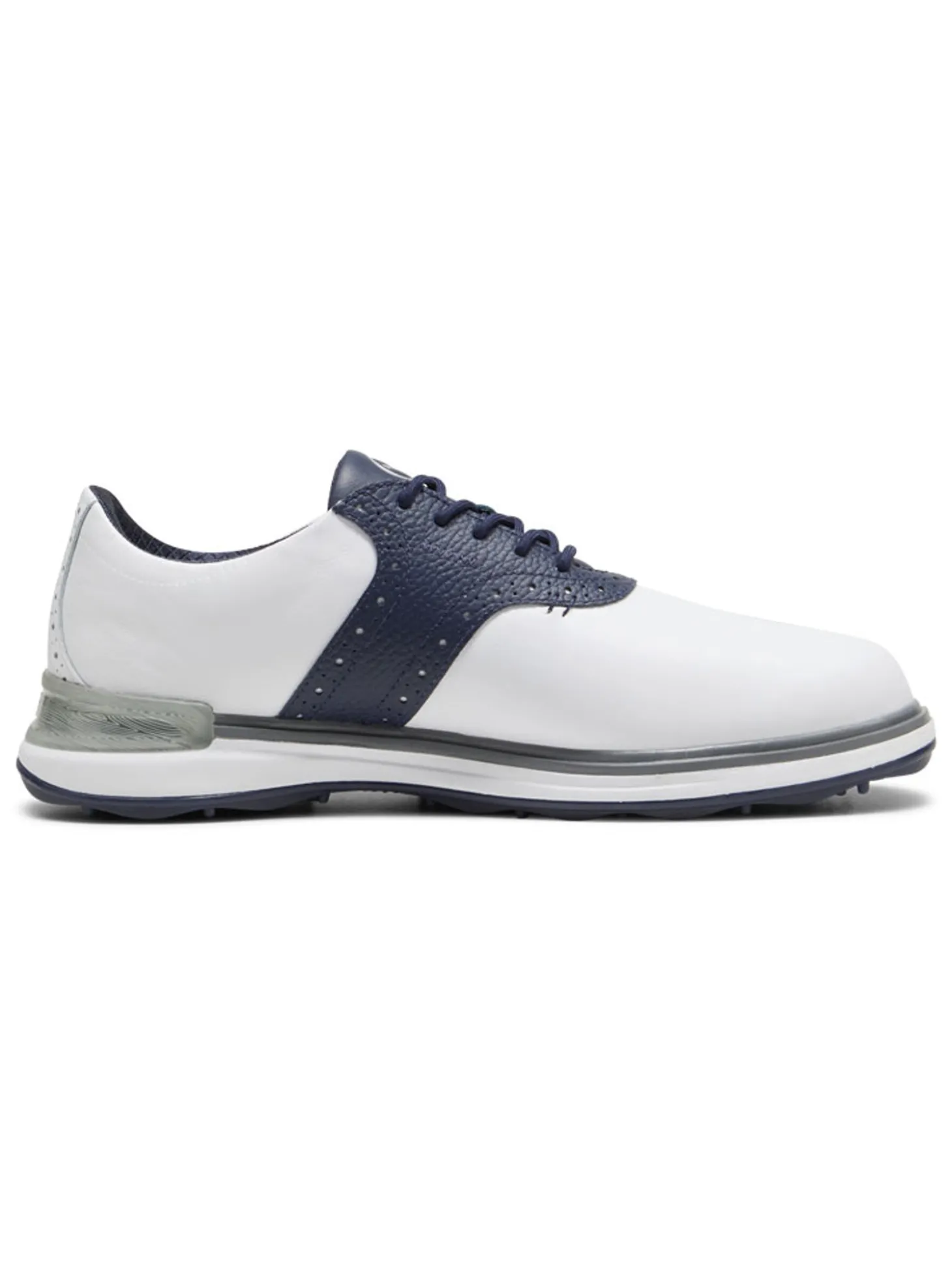 The Puma Avant Golf Shoes (White Navy) feature a full grain leather upper for premium performance. Its textured collar and an EVA midsole gaurantees some comfort on the course.
