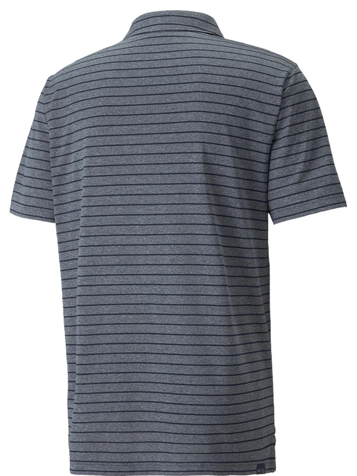The Puma Rotation Stripe Polo (Navy) has an all-over stripe print and is moisture-wicking for a cool day at the course.