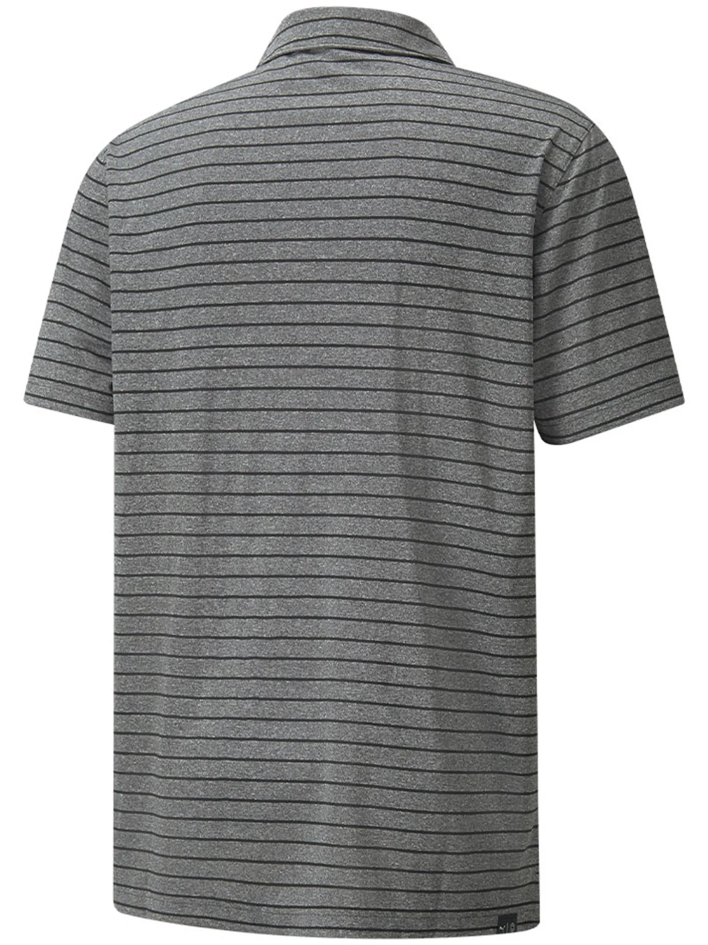 The Puma Rotation Stripe Polo (Black) has an all-over stripe print and is moisture-wicking for a cool day at the course.