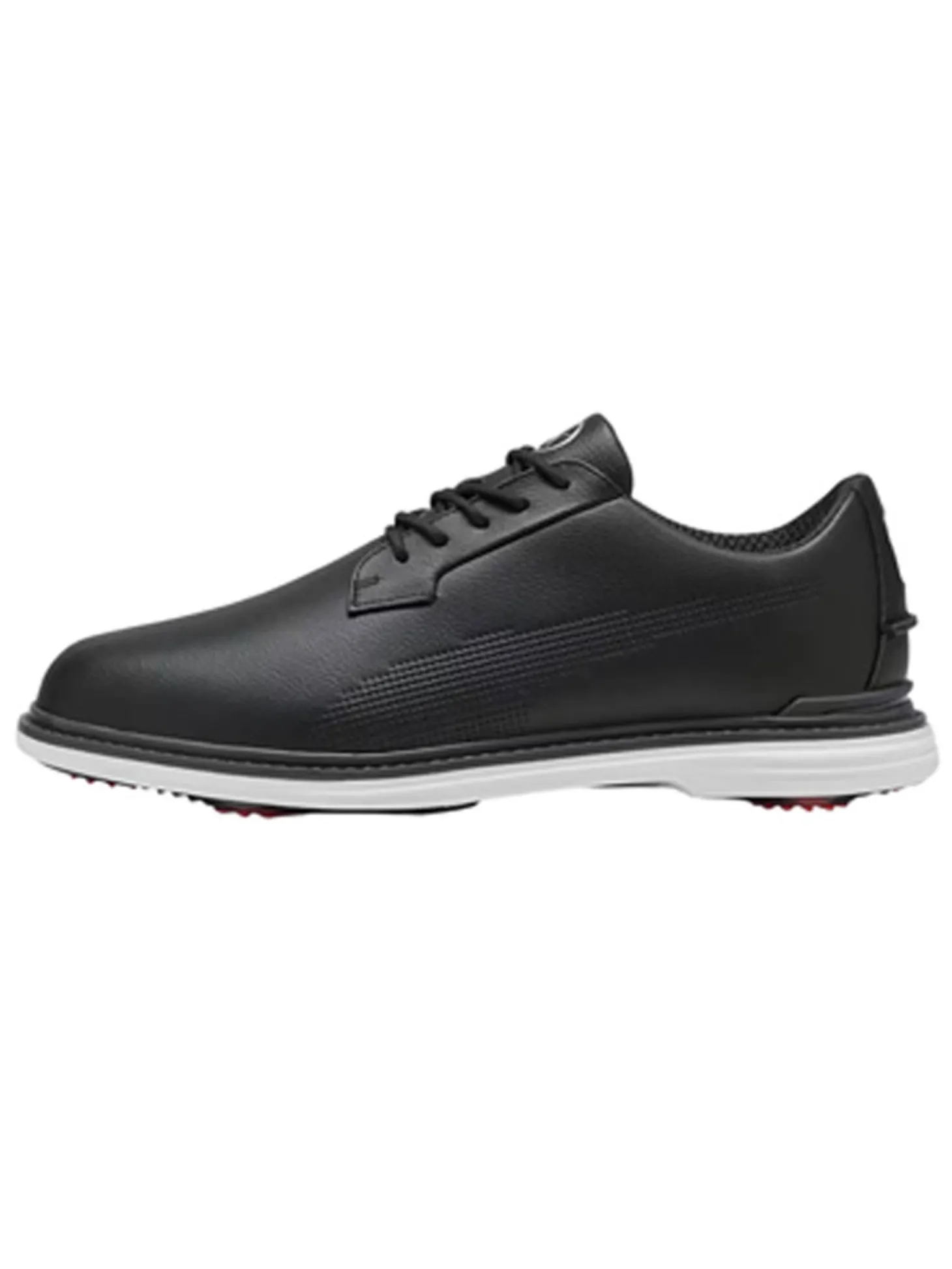 The Puma Royale Golf Shoes (Black) are built for the future. Featuring premium full-grain leather, a PROFOAM midsole, and a FLEXSPIKE outsole for unrivalled traction. The stitched performance TPU welt and PROMOLD sockliner ensure every step is cushioned and supported. Elevate your game with modern performance details and classic style.