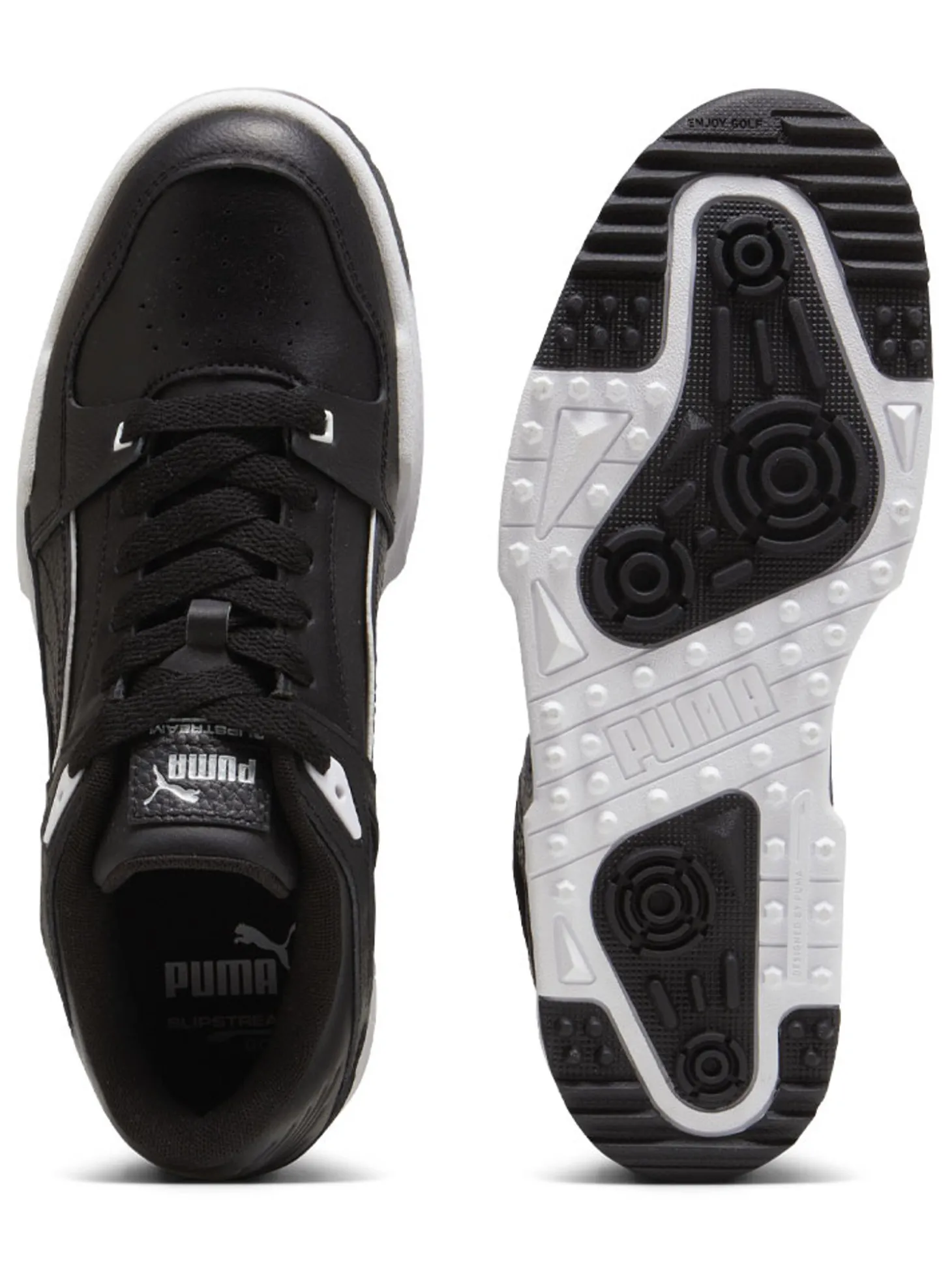 The Puma Slipstream G Golf Shoes (Black) feature a waterproof leather upper and a grippy outsole that’ll have you steady while launching balls down the fairway.