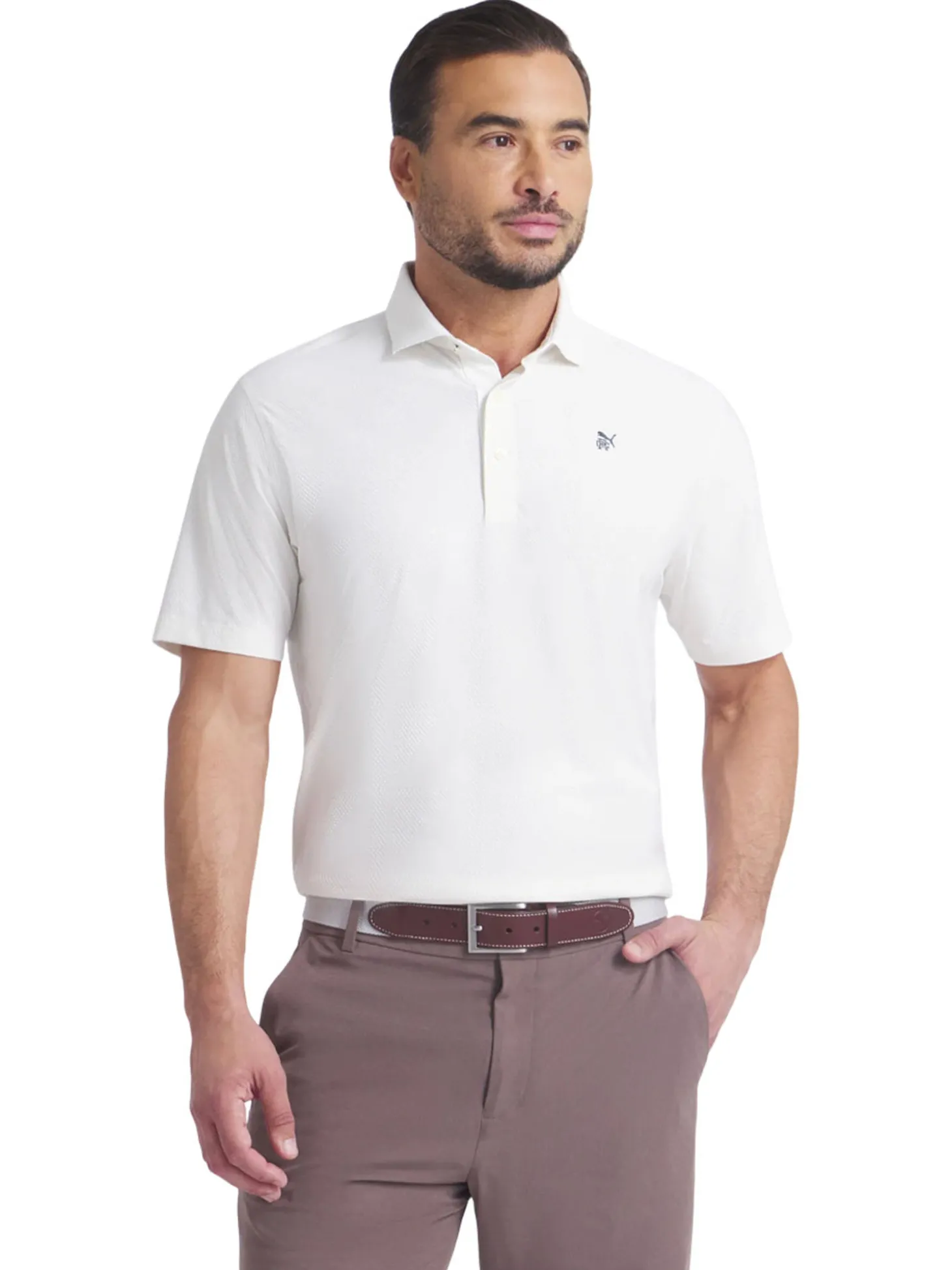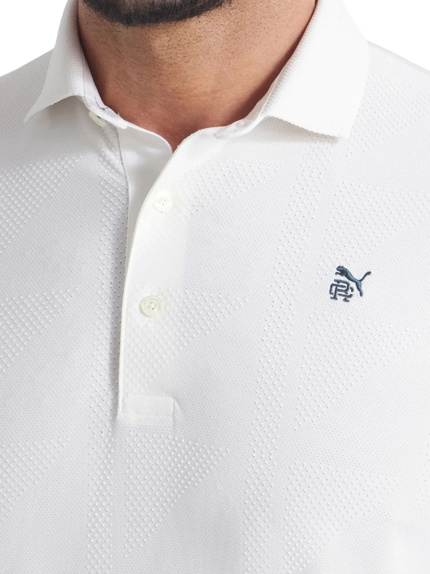 The Puma x Reigning Champ MATTR Jacquard Golf Polo (White) is where the field meets the fairway. Drawing from Puma’s rich football heritage and Reigning Champ’s deep roots in sports culture, this collection bridges the worlds of football and golf, redefining athletic boundaries and challenging tradition.