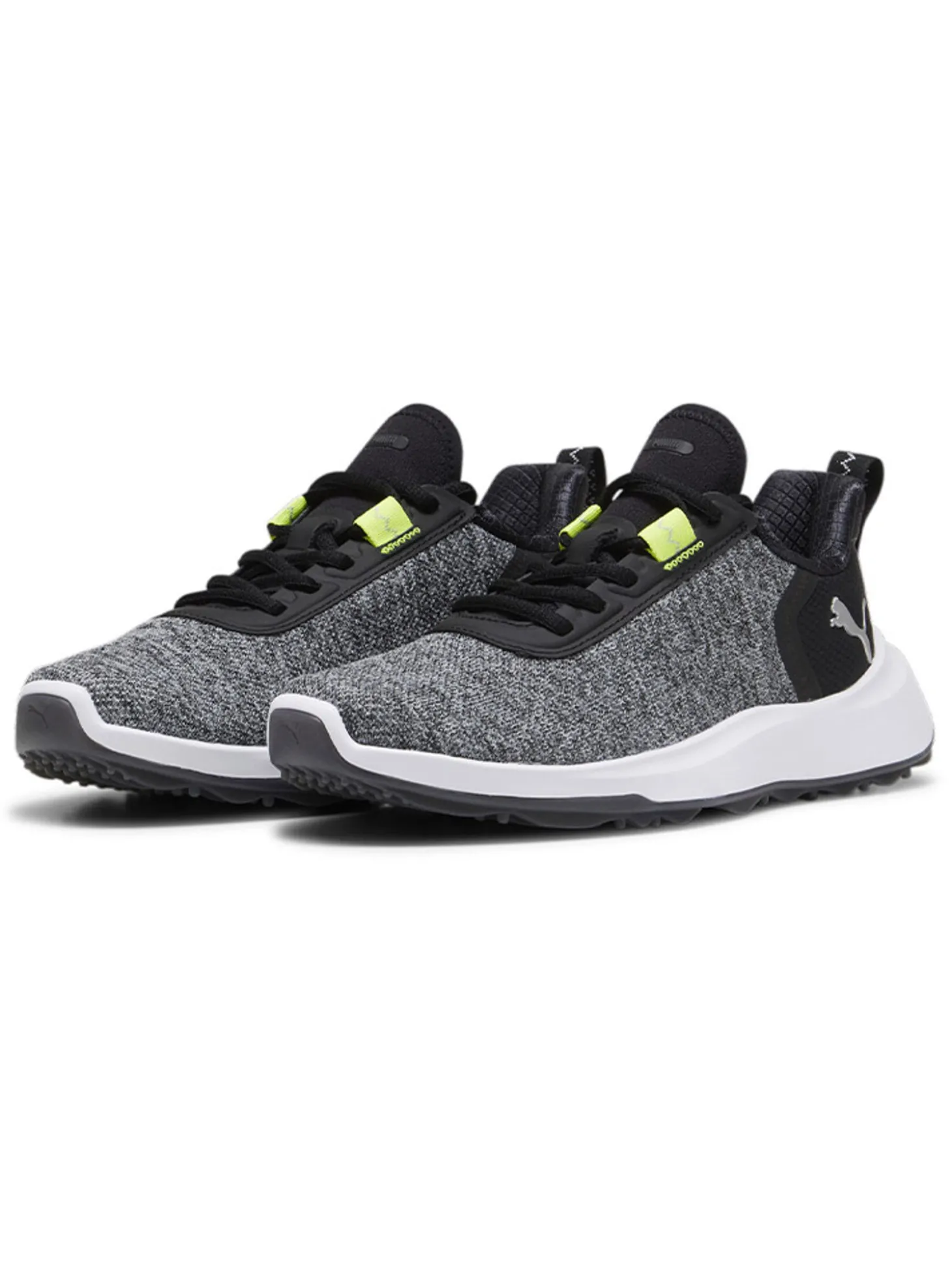 The Puma Youth FUSION Crush Sport Spikeless Golf Shoes (Black) are breathable mesh and waterproof build keeps feet dry, while IGNITE FOAM and FUSIONFOAM deliver energy return with every swing. Let your game explode onto the course.