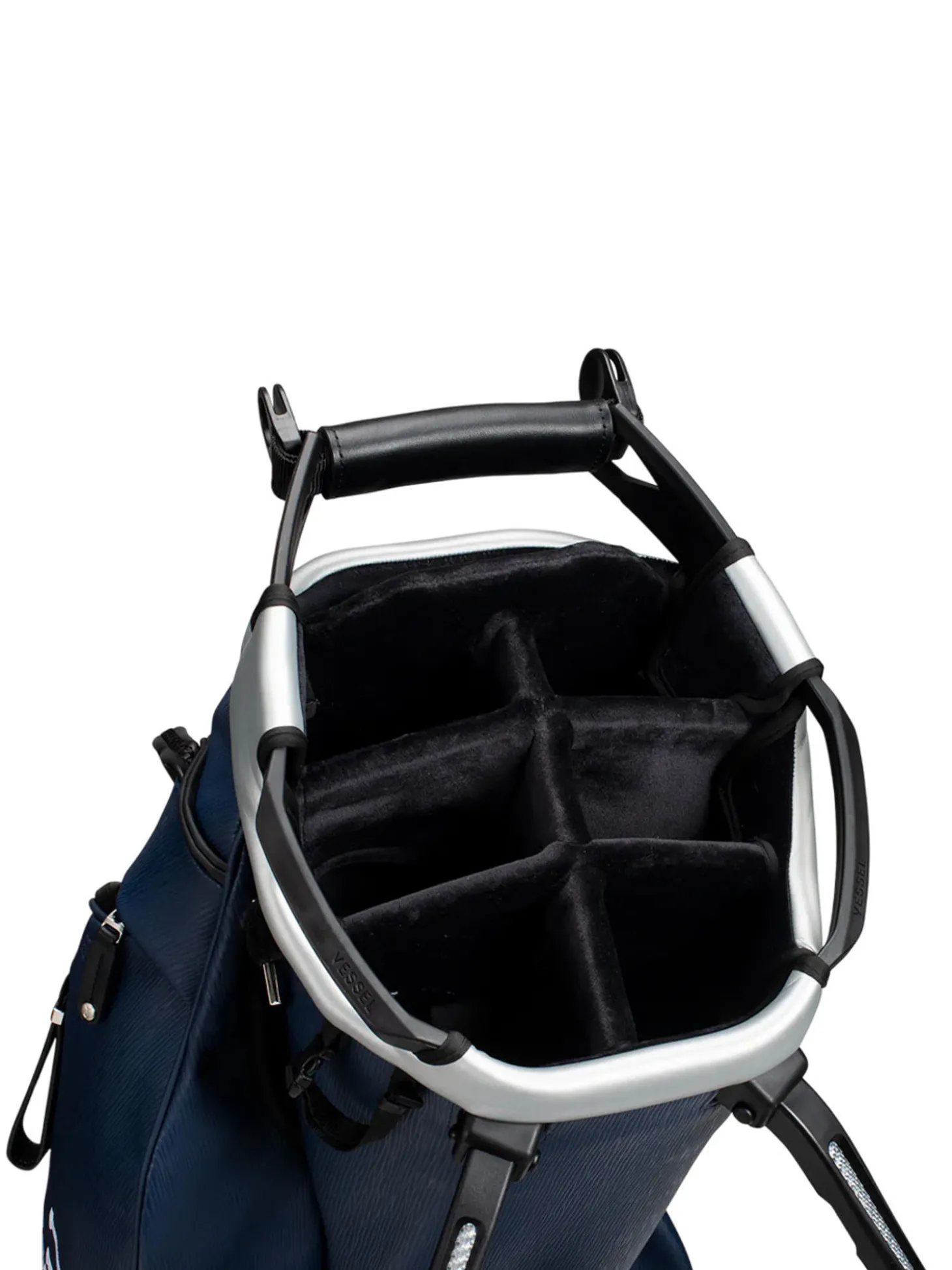 This limited edition Player V Pro Stand bag is part of The Open x VESSEL Collection, specially designed to commemorate the tradition and legacy of one of the most prestigious championships in golf. The design concept behind this limited edition collection was inspired by the Championship’s signature colour, navy blue, and features the iconic logo with the silver Claret Jug.Â