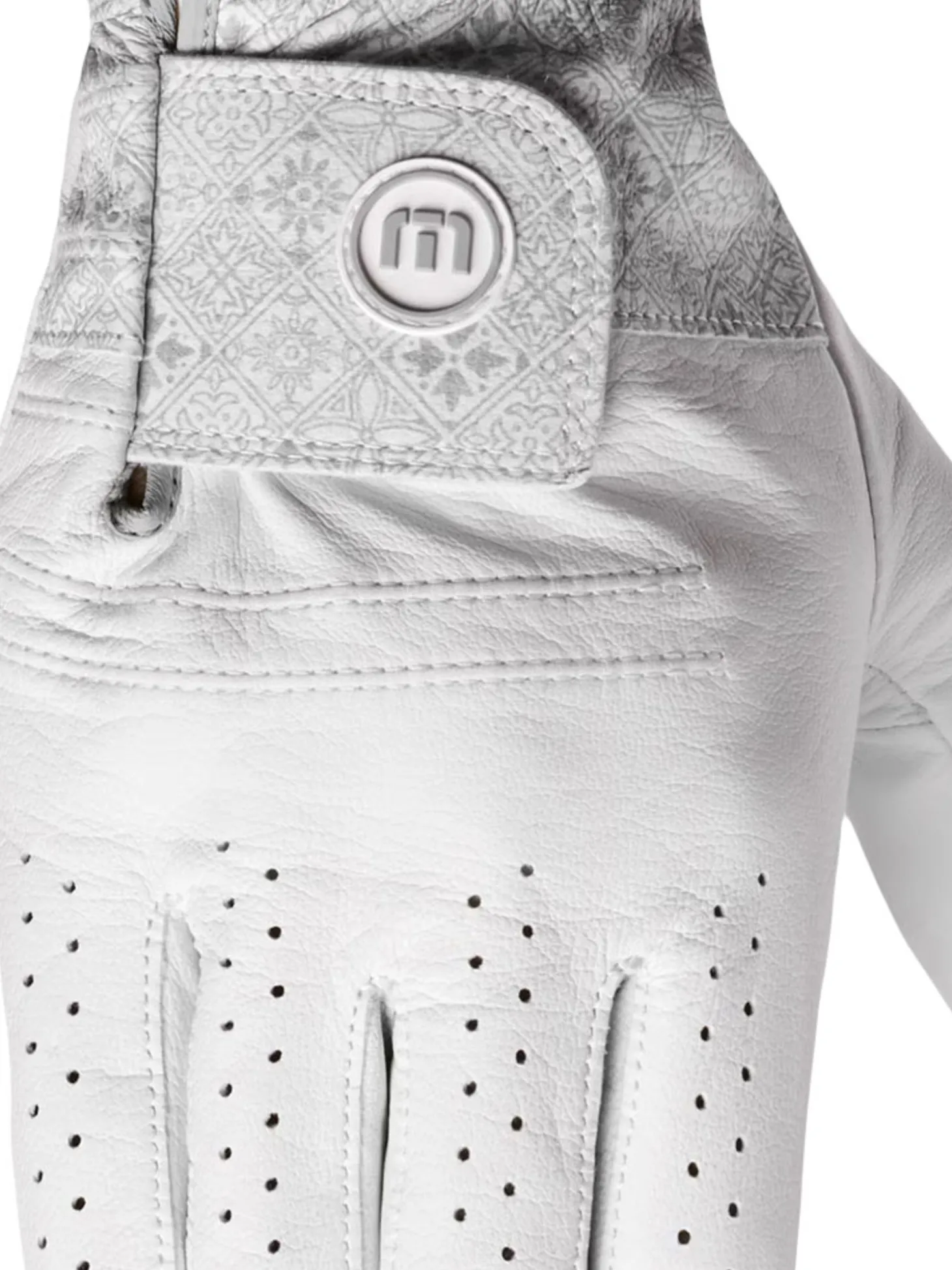 The TravisMathew Headliner Glove (White Acropolis) is designed with a geometric print. It is a must-have if you love the game.